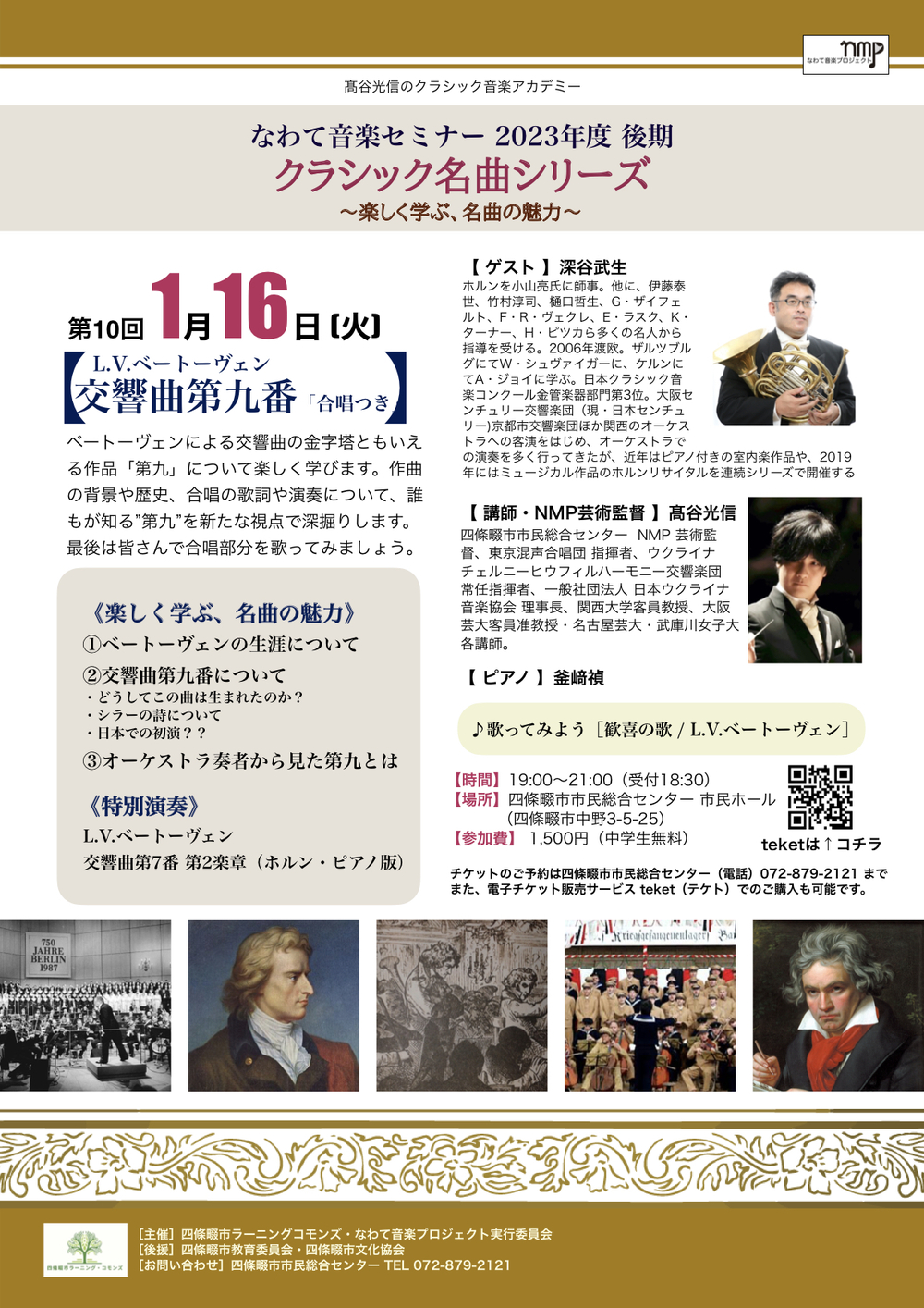 ベートーヴェンによる交響曲の金字塔ともいえる作品「第九」について楽しく学びます。作曲の背景や歴史、合唱の歌詞や演奏について、誰もが知る”第九”を新たな視点で深掘りします。