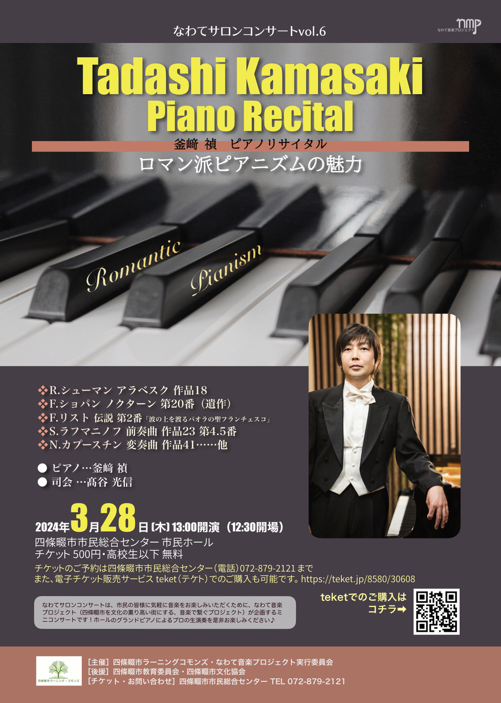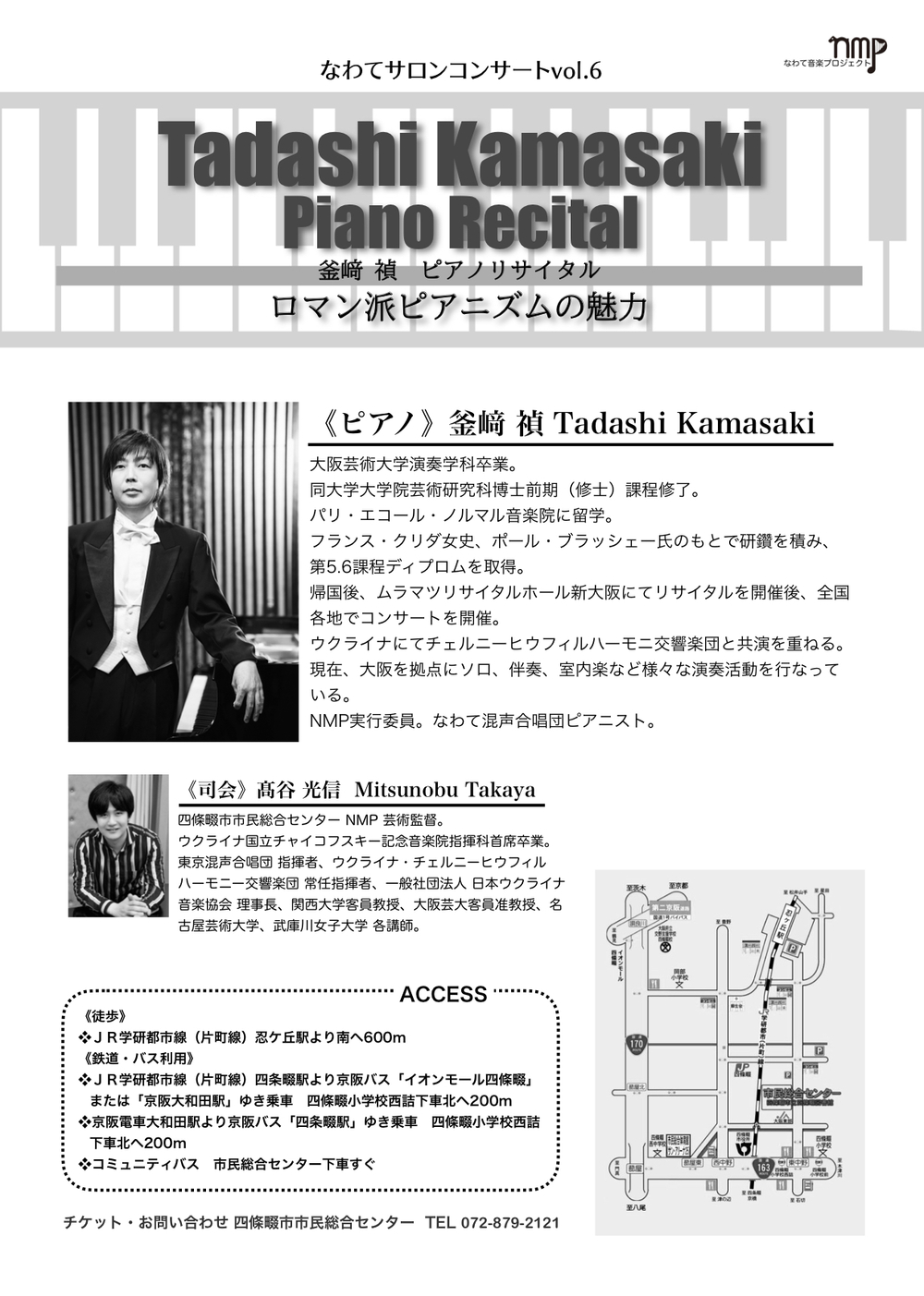 超大人気企画「なわてサロンコンサート」にて、これまで素晴らしい伴奏を披露してきた釜﨑禎さんが、満を辞してピアノソロで登場!