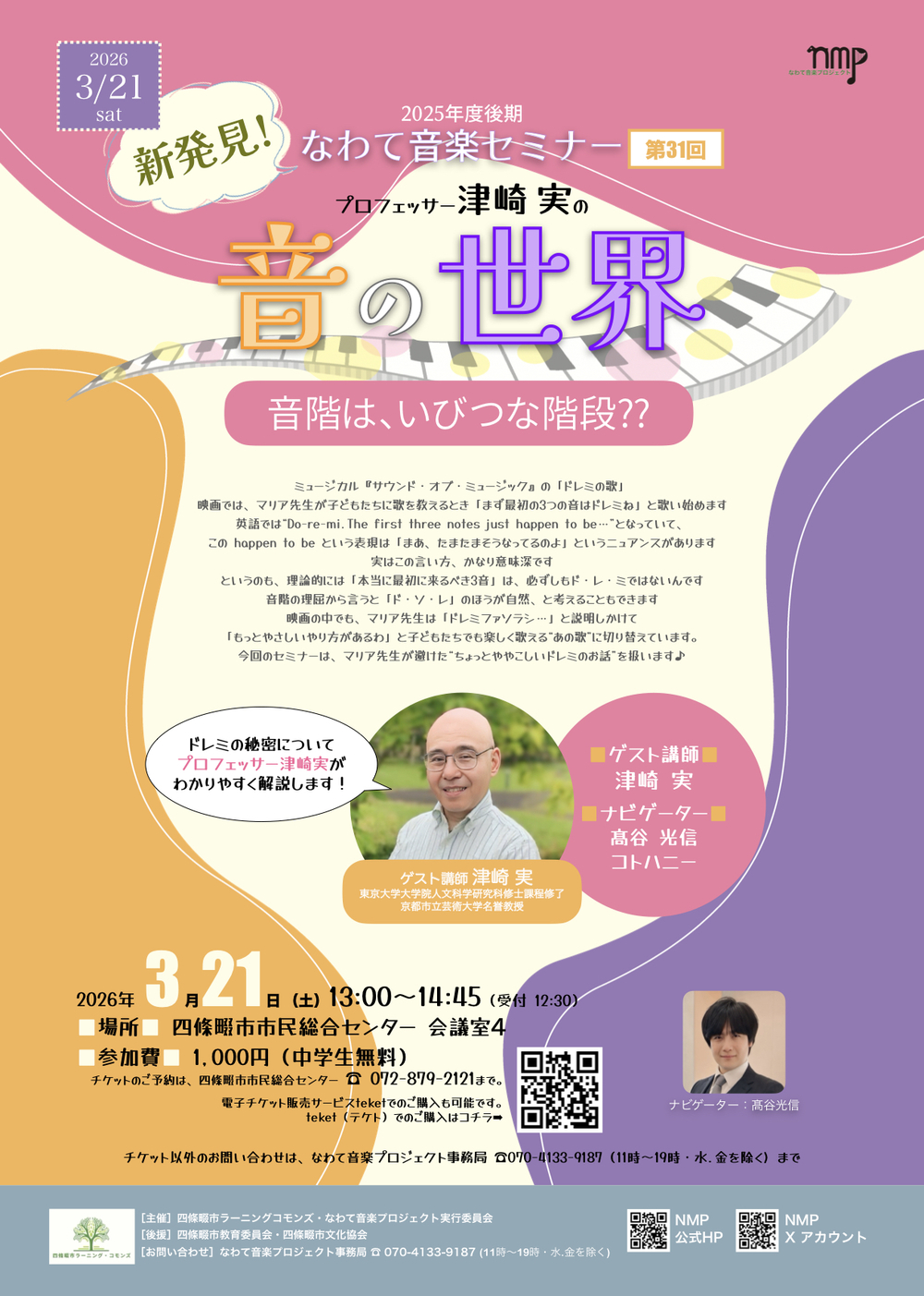 なわて音楽セミナーになわて音楽プロジェクトの実行委員長「プロフェッサー 津崎実」による“音の世界”第2弾!