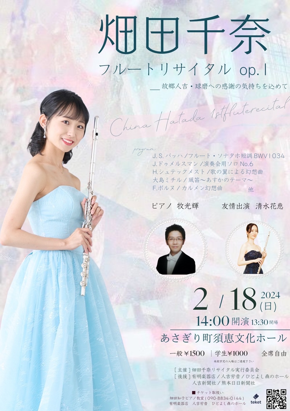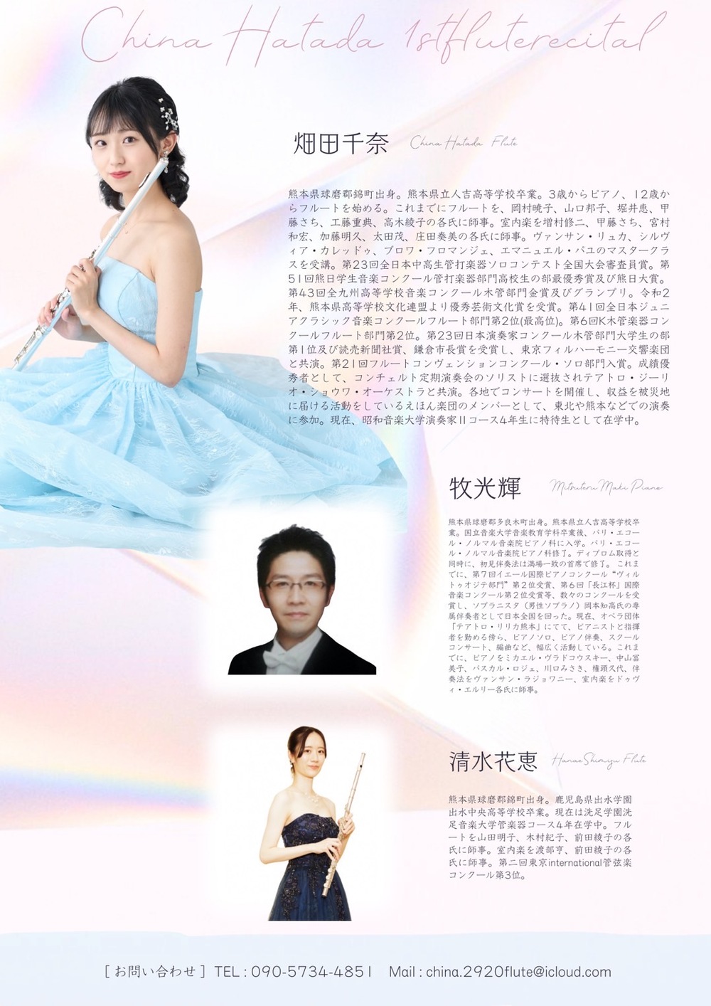 2部は同じ中学出身の清水花恵さんとのデュオもあり地元の方への感謝の気持ちをフルートで伝えます。