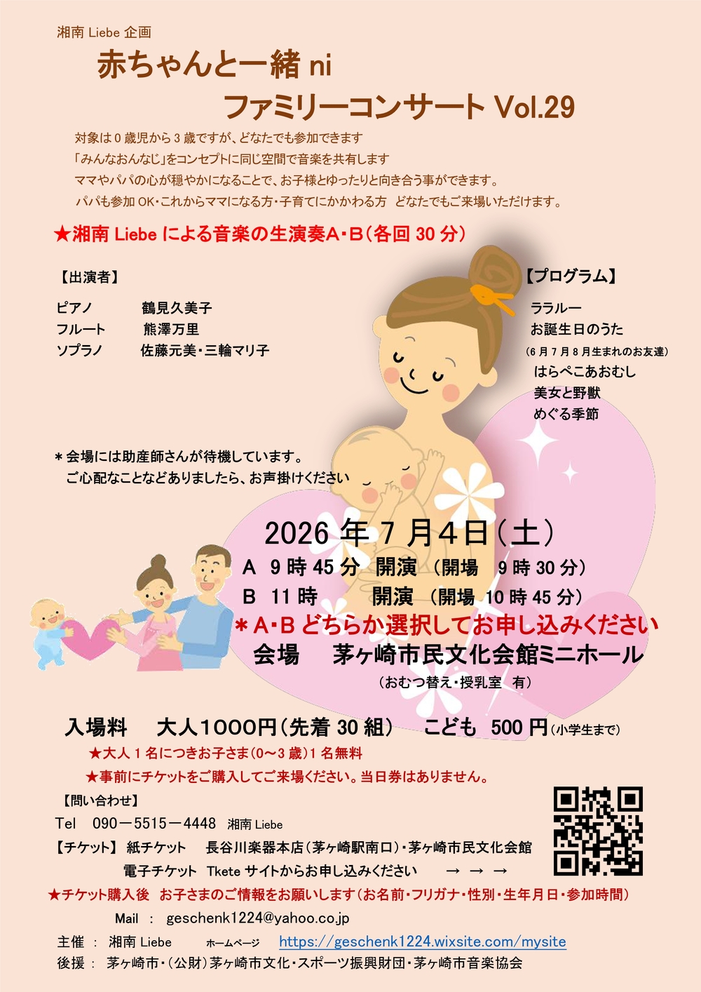 コンサートを運営するにあたり、お子さまの情報をお願いしております。チケットご購入後下記をお願いいたします。