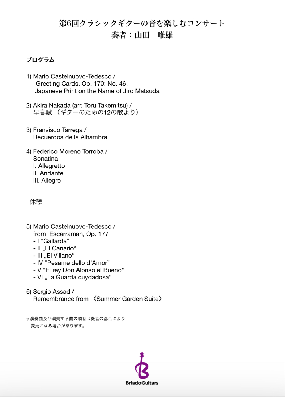※演奏曲及び演奏する曲の順番は奏者の都合により変更になる場合があります。