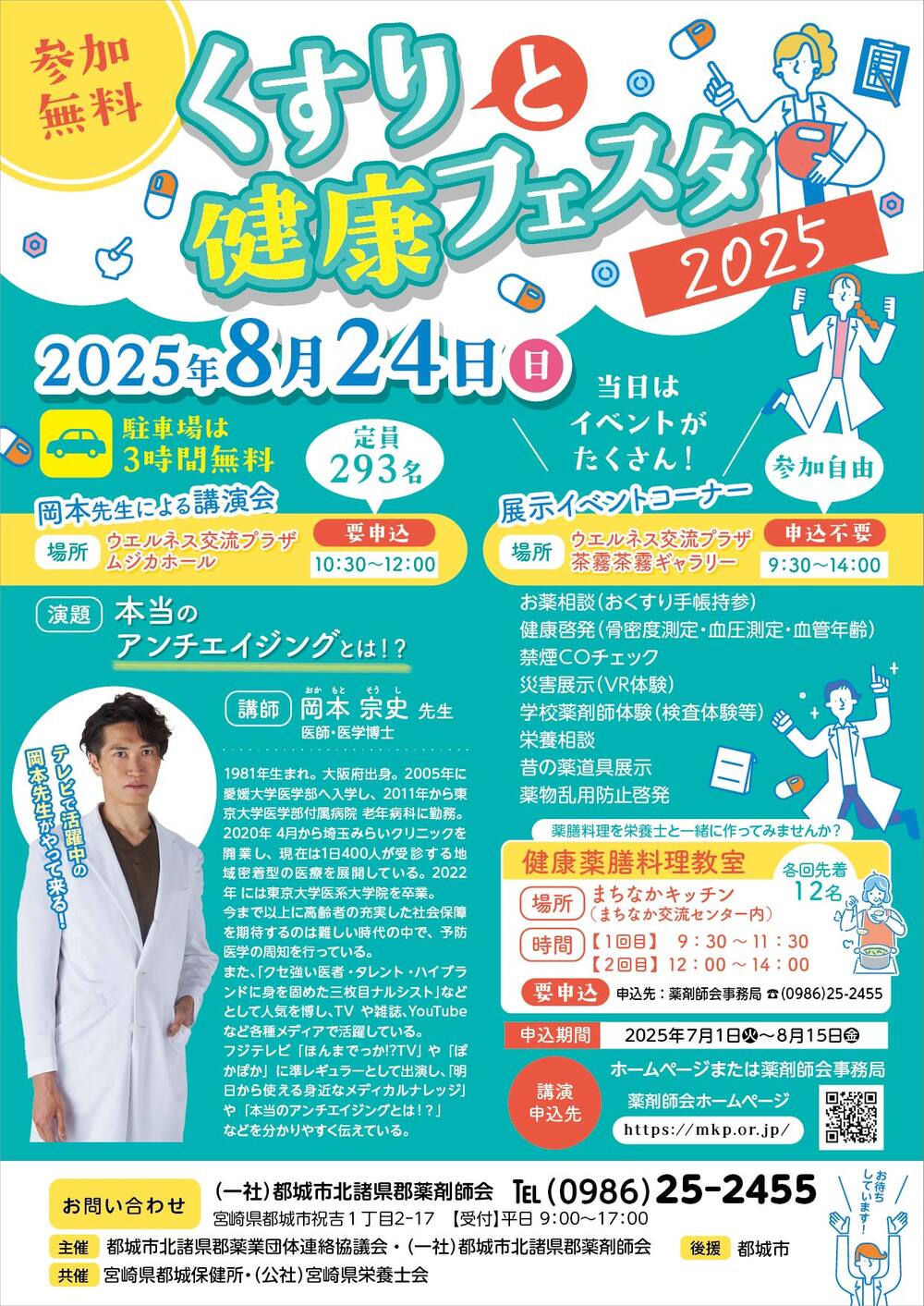 テレビで活躍中の医師・医学博士である岡本宗史先生による講演のほか、健康薬膳料理教室や各種展示や体験型ブースを多数設置。