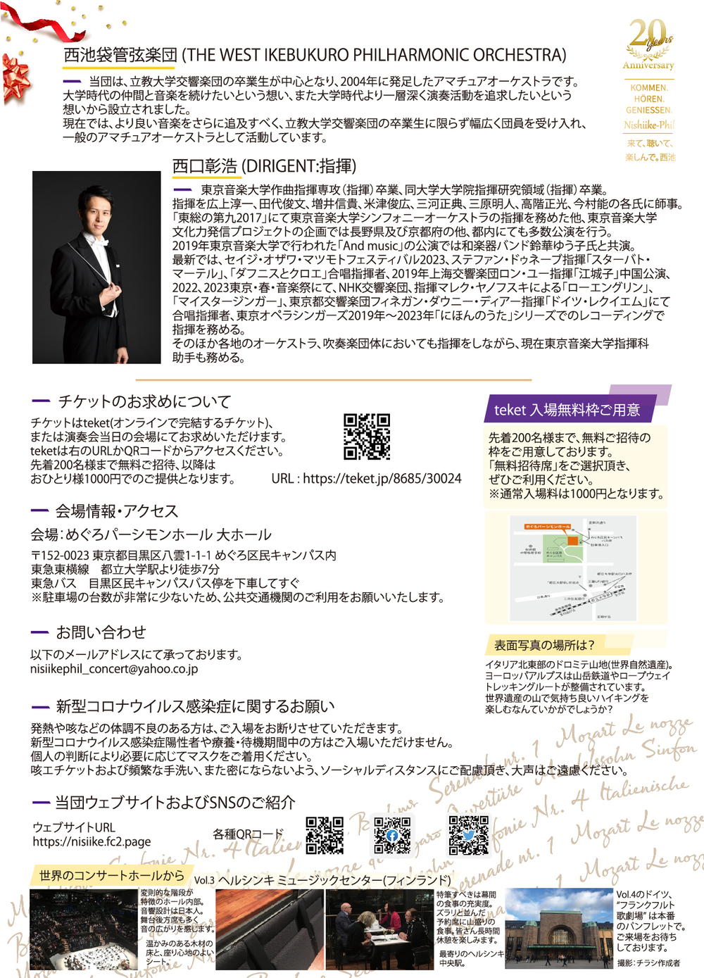 その他のお問い合わせ先:メールアドレス:nisiikephil_concert@yahoo.co.jp