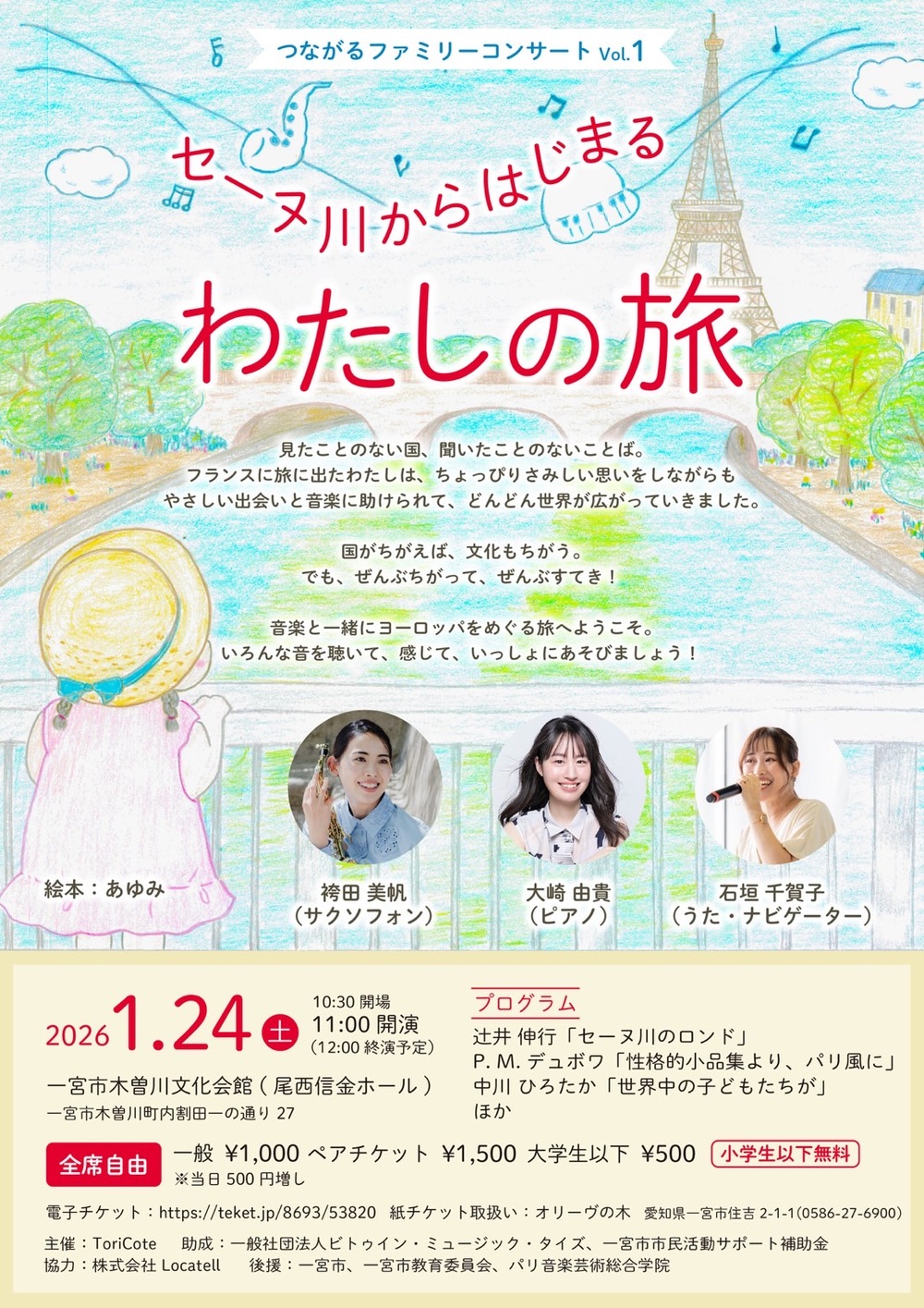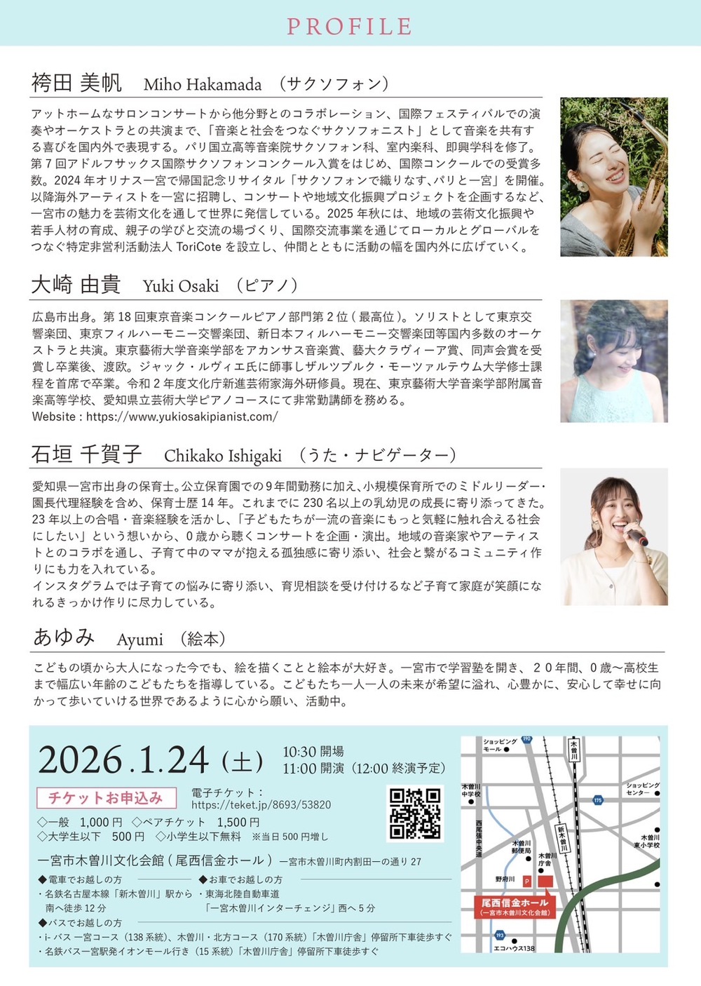 アットホームなサロンコンサートから他分野とのコラボレーション、国際フェスティバルでの演奏やオーケストラとの共演まで、「音楽と社会をつなぐサクソフォニスト」として音楽を共有する喜びを国内外で表現する。パリ国立高等音楽院サクソフォン科、室内楽科、即興学科を修了。第7回アドルフサックス国際サクソフォンコンクール入賞をはじめ、国際コンクールでの受賞多数。2024年オリナス一宮で帰国記念リサイタル「サクソフォンで織りなす、パリと一宮」を開催。以降海外アーティストを一宮に招聘し、コンサートや地域文化振興プロジェクトを企画するなど、一宮市の魅力を芸術文化を通して世界に発信している。2025年秋には、地域の芸術文化振興や若手人材の育成、親子の学びと交流の場づくり、国際交流事業を通じてローカルとグローバルをつなぐ特定非営利活動法人ToriCoteを設立し、仲間とともに活動の幅を国内外に広げていく。