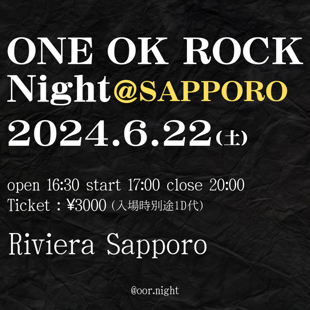 北海道札幌の大型クラブを完全貸切して、ONE OK ROCKしか流れないクラブイベントを開催します!!