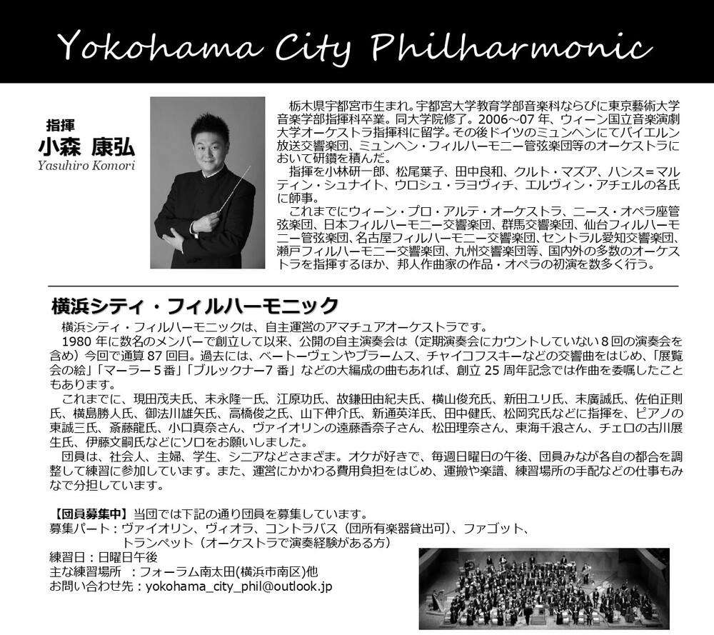 今回は指揮者に小森康弘氏を迎え、ボロディン「交響曲第1番」、チャイコフスキー「交響曲第4番」をお届けします。
