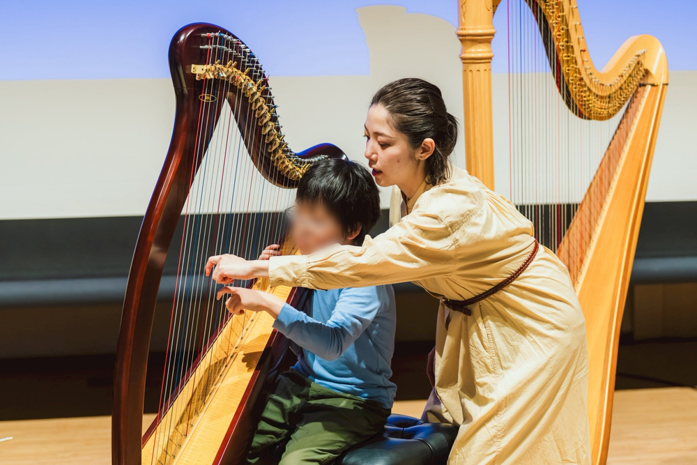 なかなか間近で見ることのないヴァイオリン・ハープに実際に触れて、生の音の迫力を感じてください!