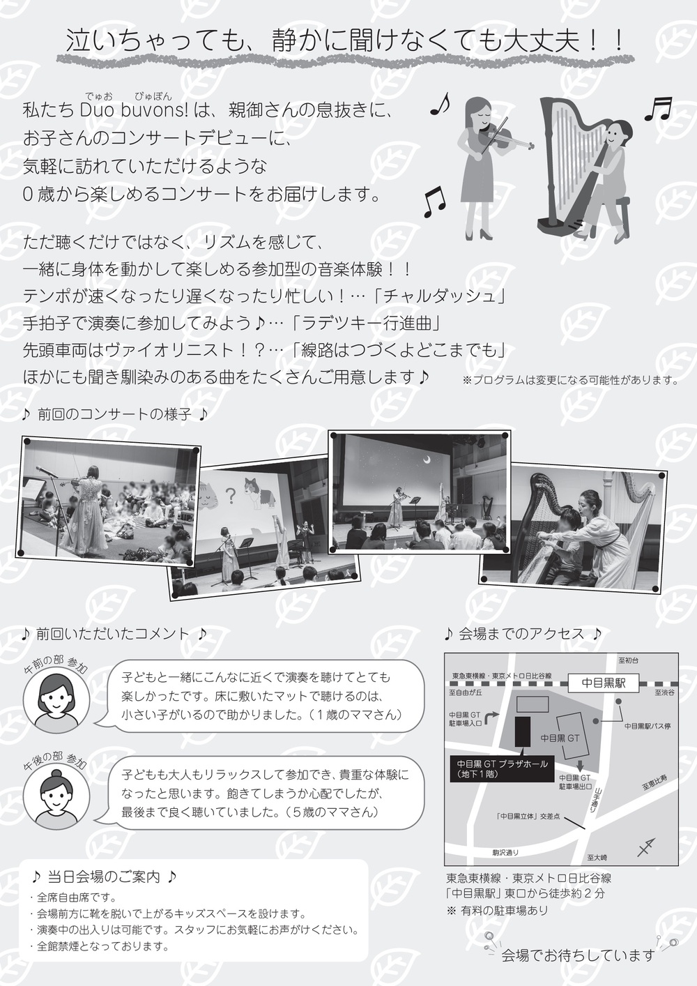 泣いちゃっても、静かに聞けなくても大丈夫!!