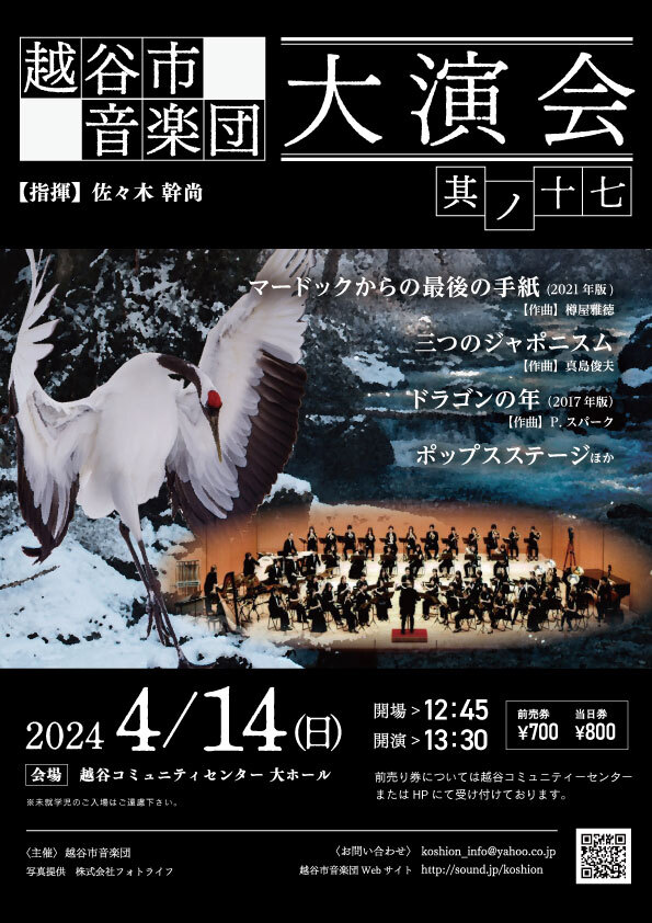 越谷市音楽団、大演会HP:https://sound.jp/koshion/daienkai/17.html