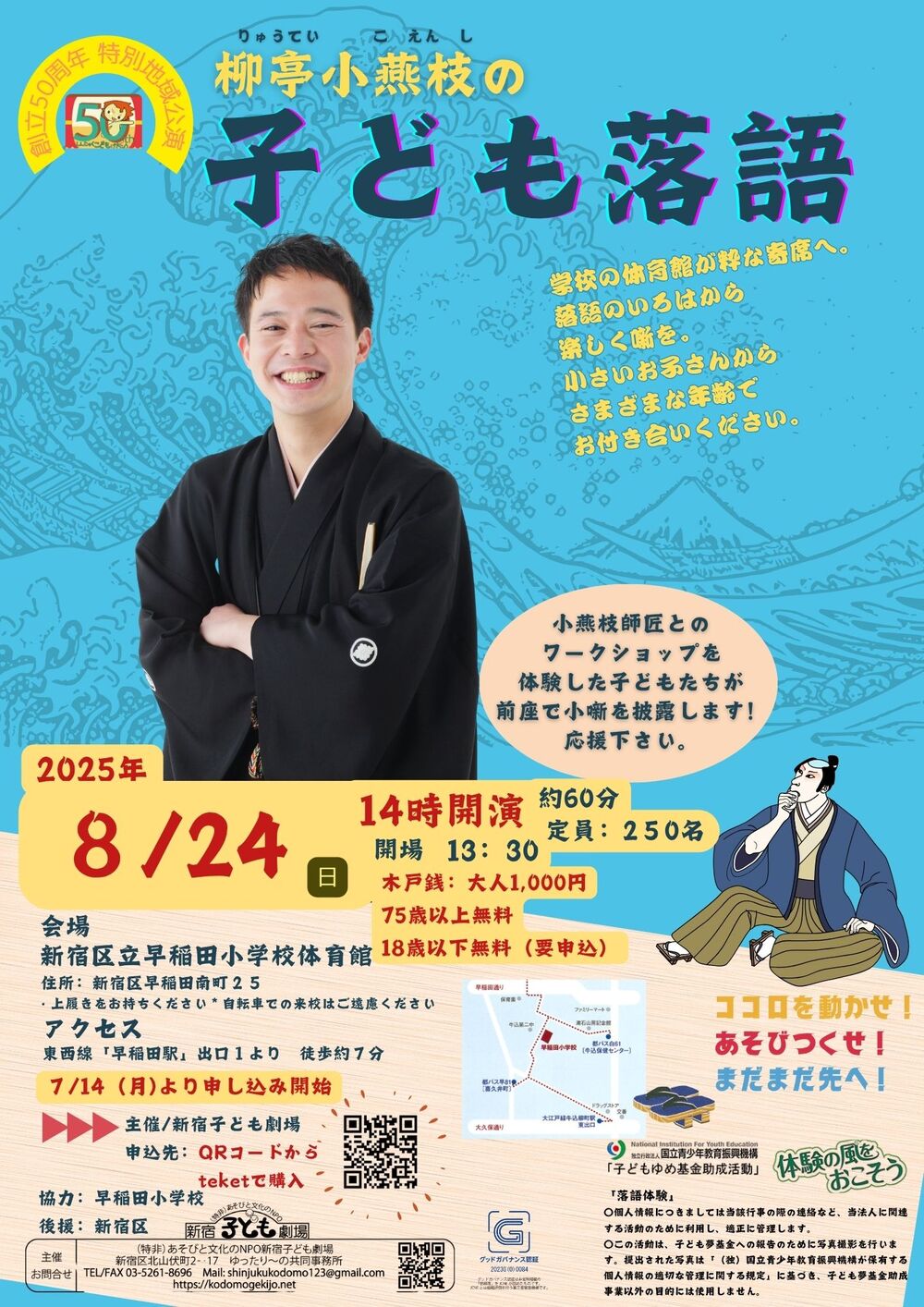 8/24(日)『柳亭小燕枝の子ども落語』@早稲田小学校体育館【牛込】