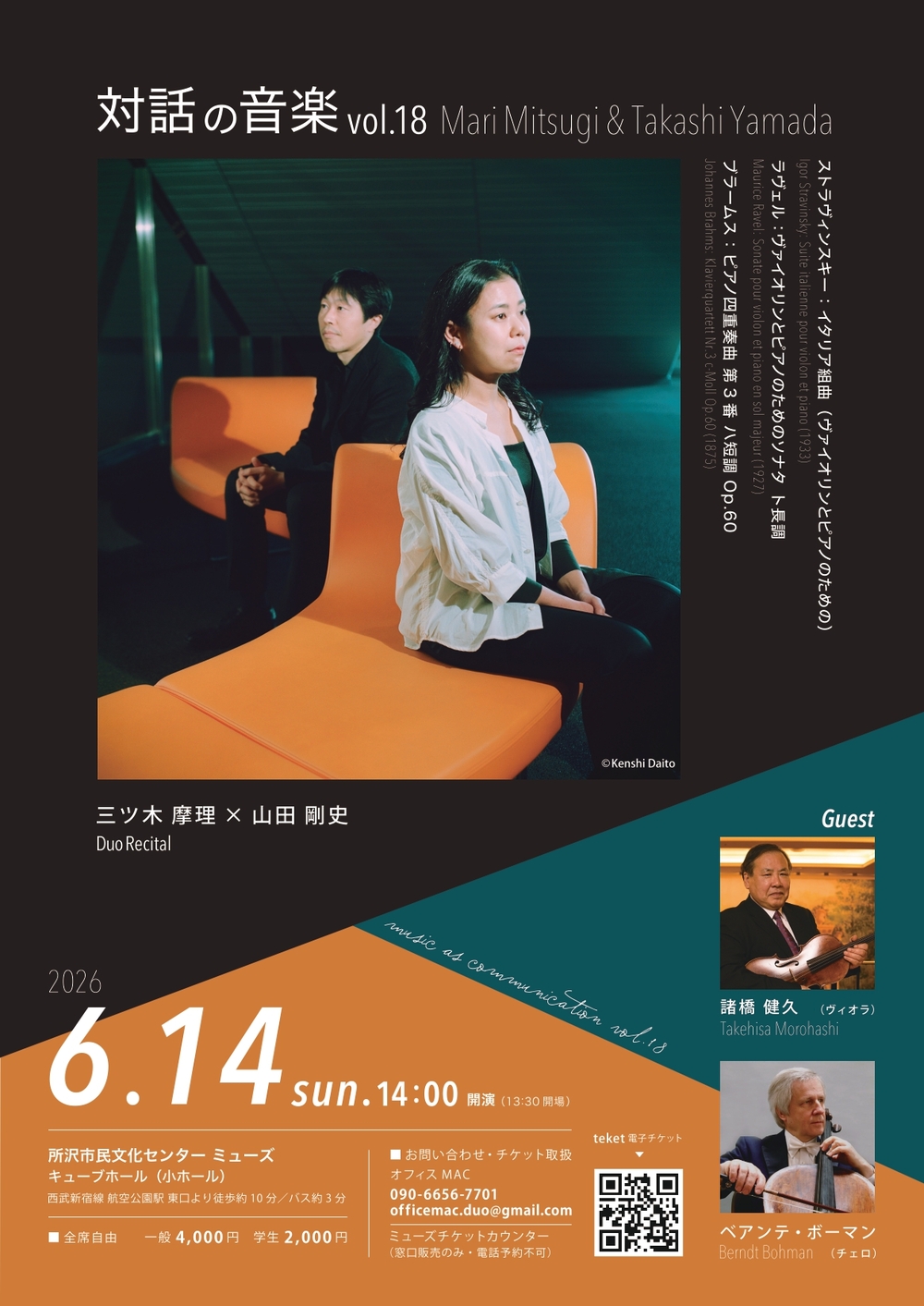 毎年開催されている三ツ木摩理・山田剛史のデュオによるリサイタルシリーズ、「対話の音楽」。