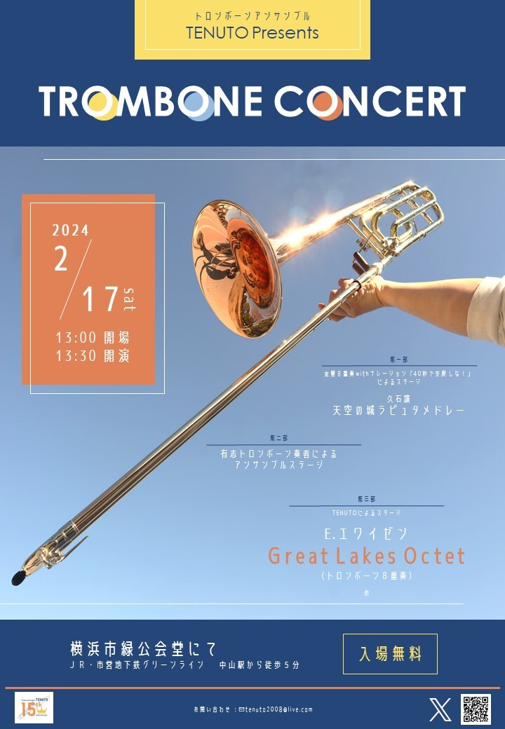 こんにちは!横浜市を中心に活動するトロンボーンアンサンブル団体、TENUTO(テヌート)です!