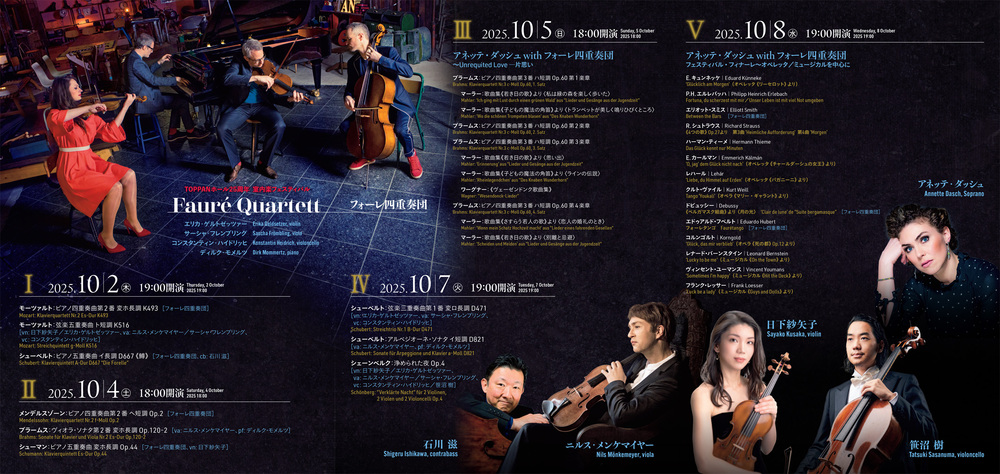 アニヴァーサリーシーズンとなる2025/26シーズンは、深い信頼で結ばれるフォーレ四重奏団を中心に、アンサンブルの名手たちが集う5日間の室内楽フェスティバルで開幕。