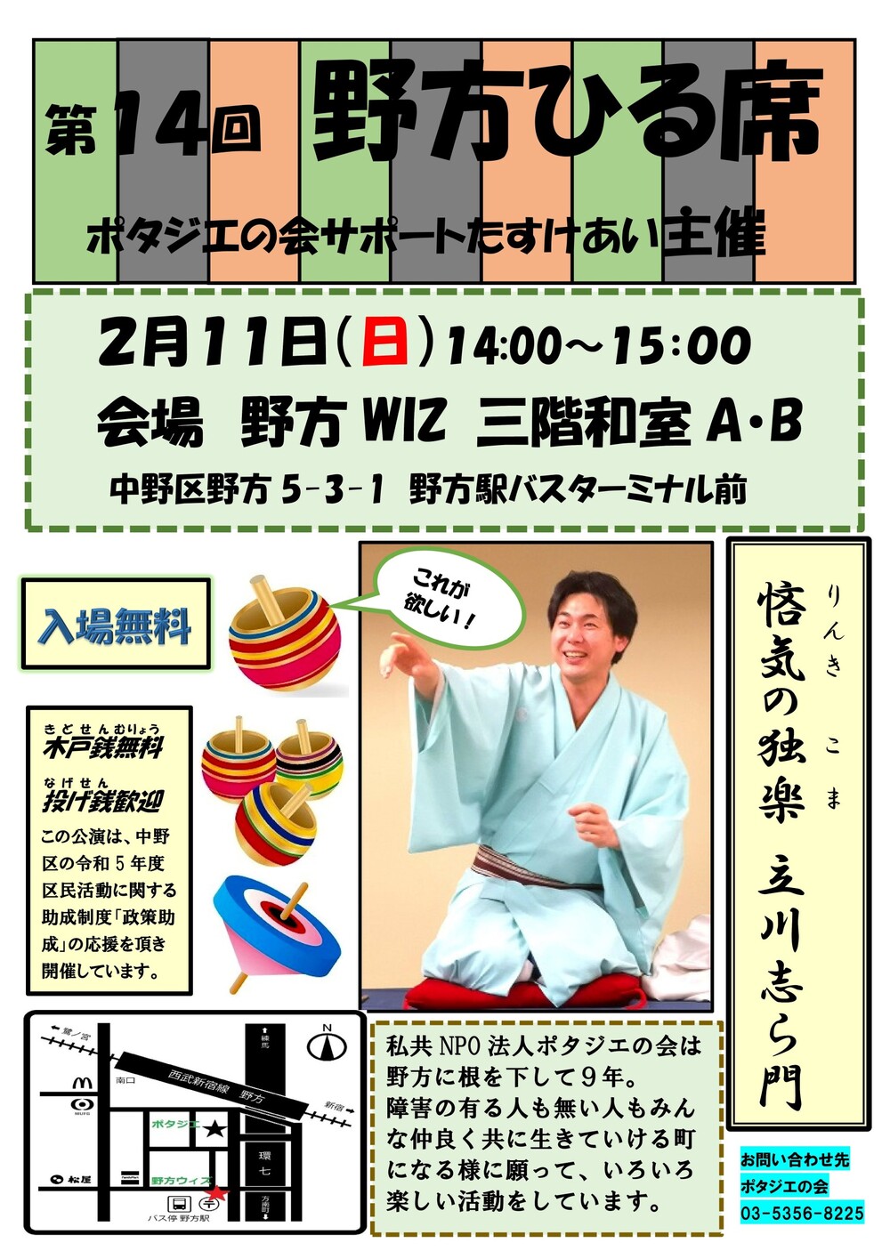 ※この公演は、中野区令和5年度区民活動に関する助成制度『政策助成』の応援を頂き開催しています。