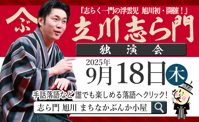 【立川志ら門】がいよいよ旭川で初の独演会!