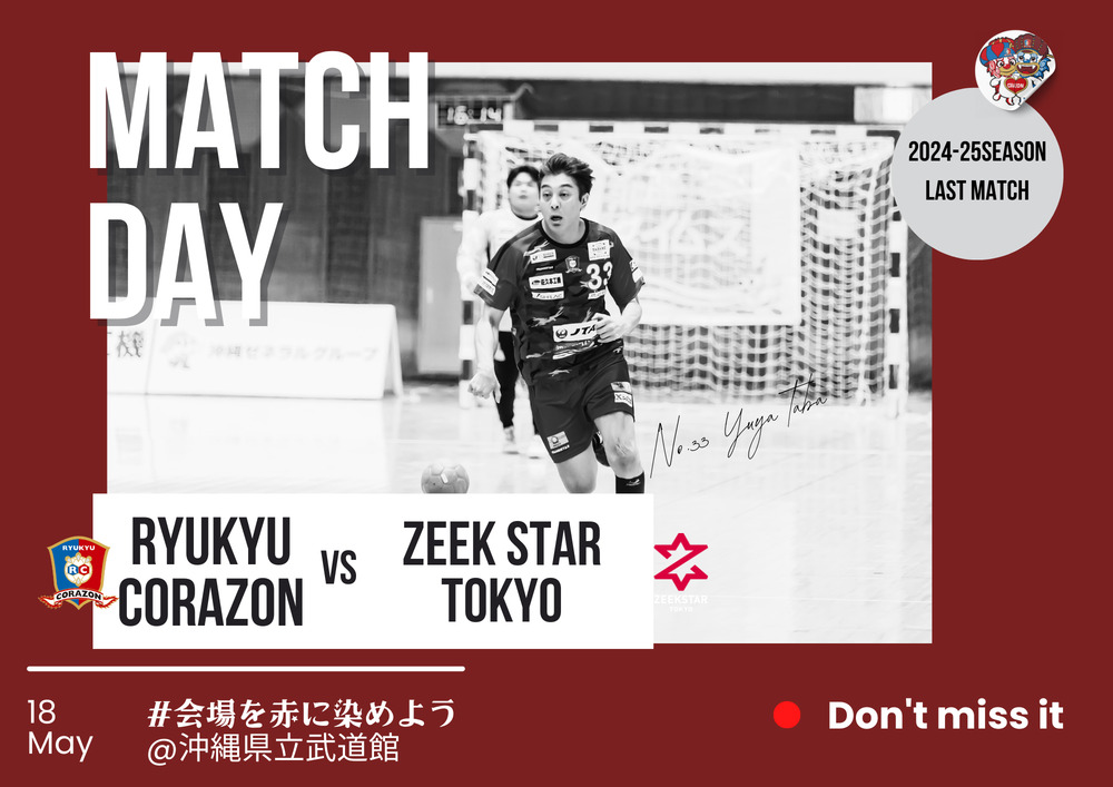 また、No.33田場裕也の最後のプレーとなりますので、ぜひ会場に足をお運びください。