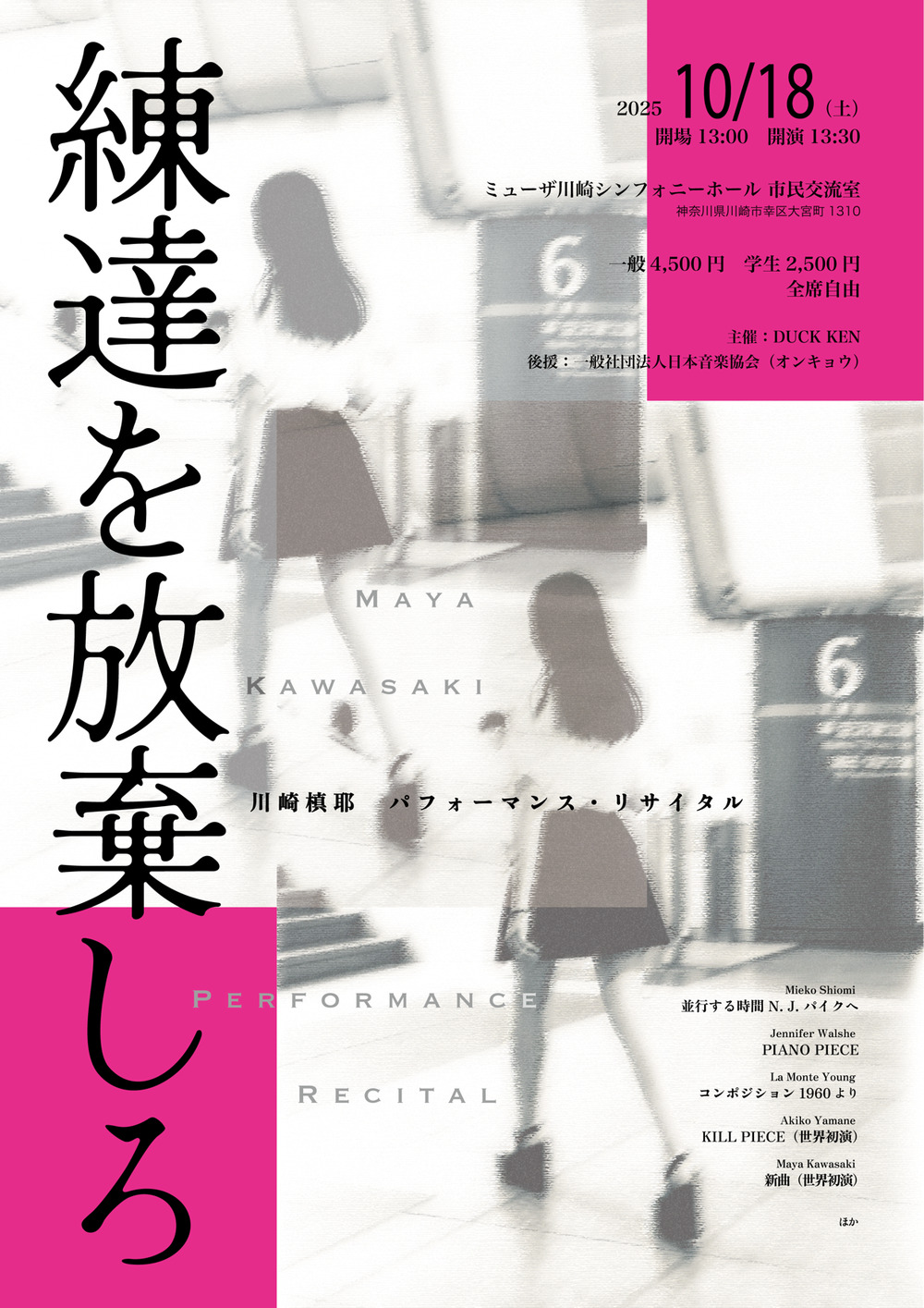 本公演では、フルクサス運動が世界的に広がった1960年代から当時の反芸術主義的エネルギーが失われつつある現在──2020年代にいたるまでのテキストによる作品を中心に取り上げ、演奏における練達の放棄を思考する。書かれたものの一義性から距離を置き、演奏解釈の限界へと向かうことで、新たな表現方法の地平を切り拓く過程のひとつとなることを目指す。