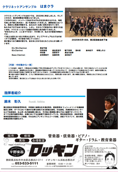 クラリネットアンサンブルはまクラは、2023年に発足しました。そしてこのたび、第3回演奏会の開催となりました。