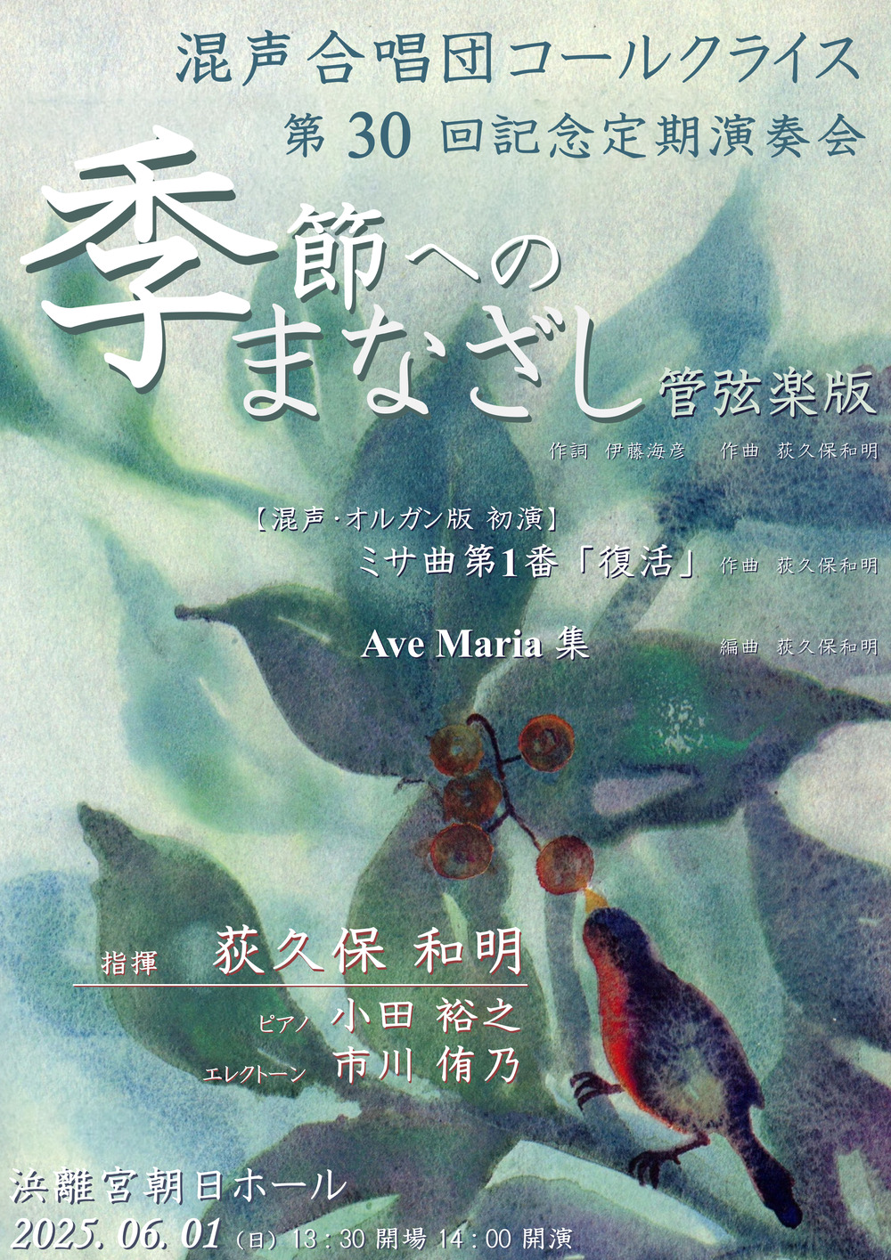 指揮:荻久保和明、ピアノ:小田裕之、エレクトーン:市川侑乃、合唱:混声合唱団コールクライス