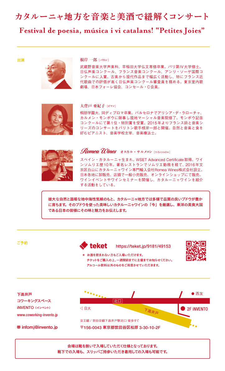 “カタルーニャ地方を音楽と美酒で紐解くコンサート“