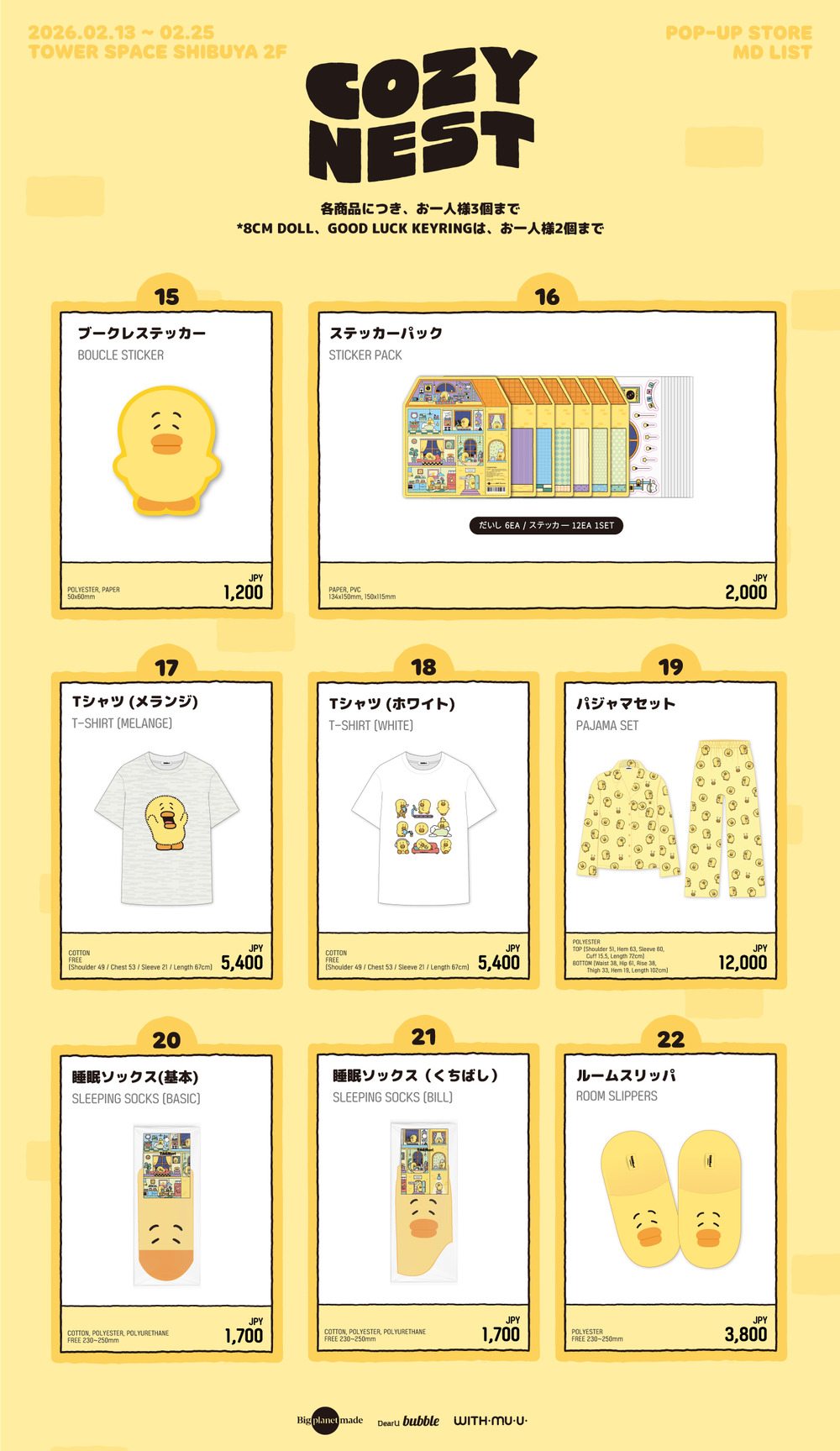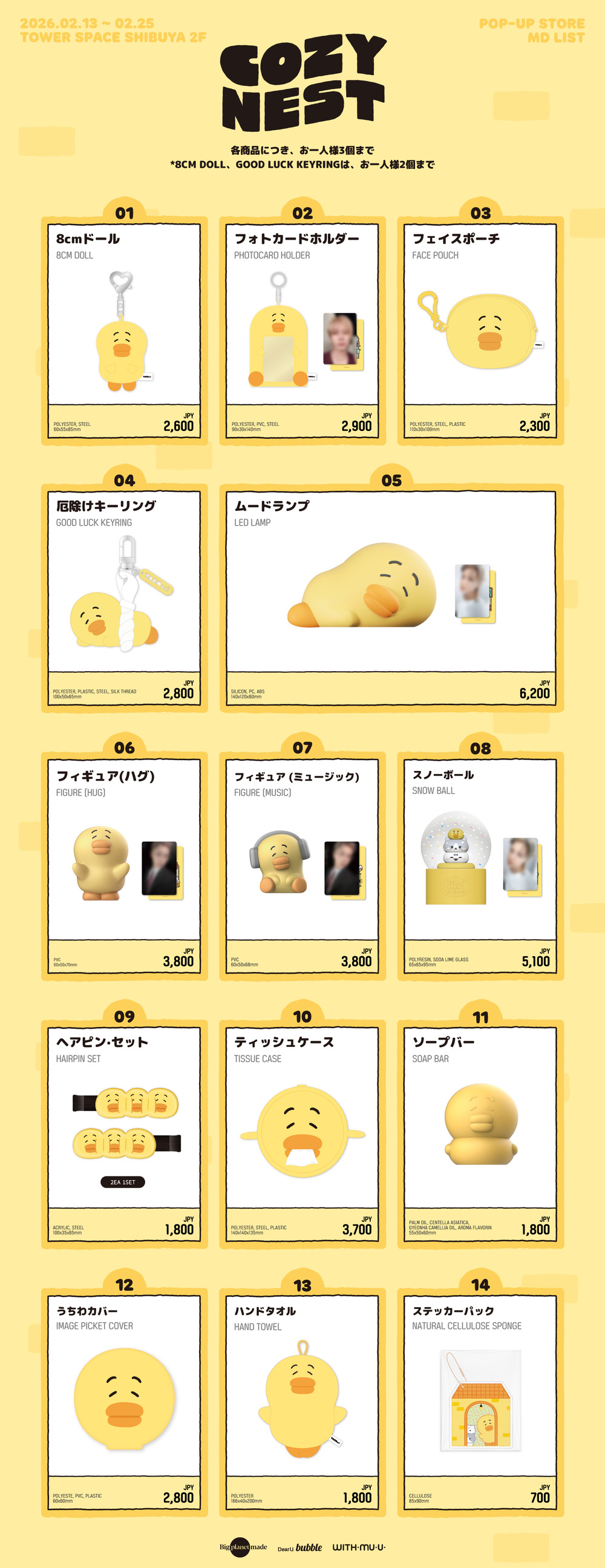 キュートなOFFICIAL グッズに加え、日本限定グッズの販売や、会場限定特典など盛りだくさんで皆様のご来場をお待ちしています。