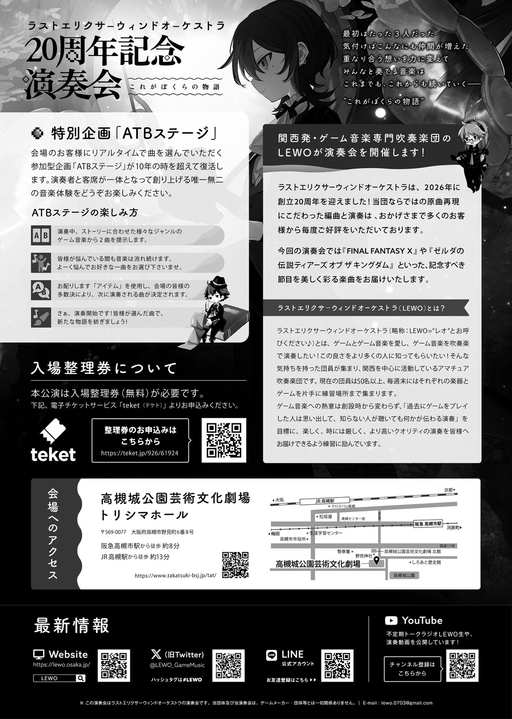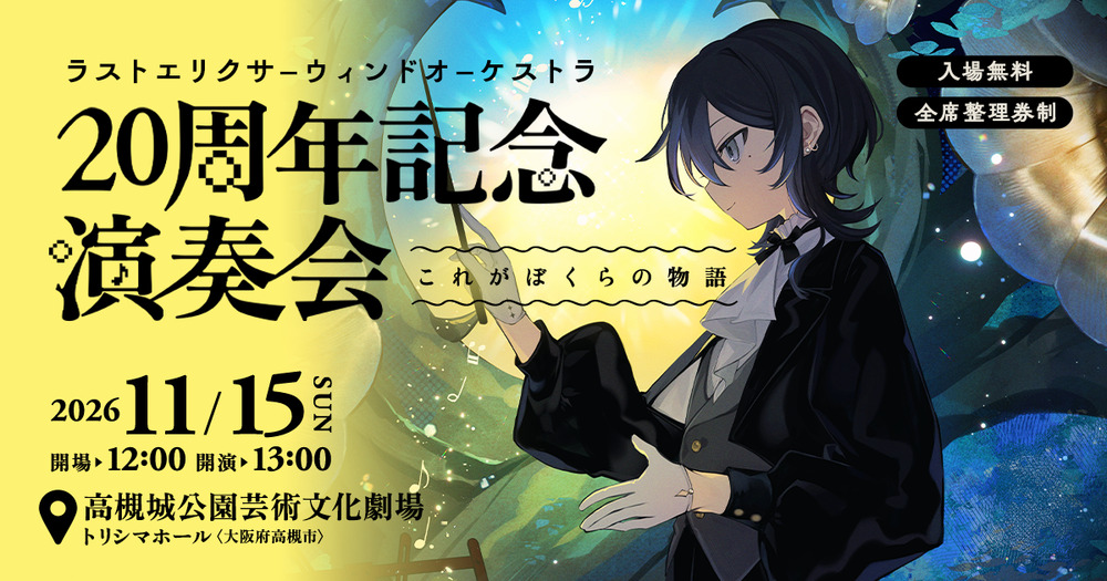 ラストエリクサーウィンドオーケストラは、2026年に創立20周年を迎えました!