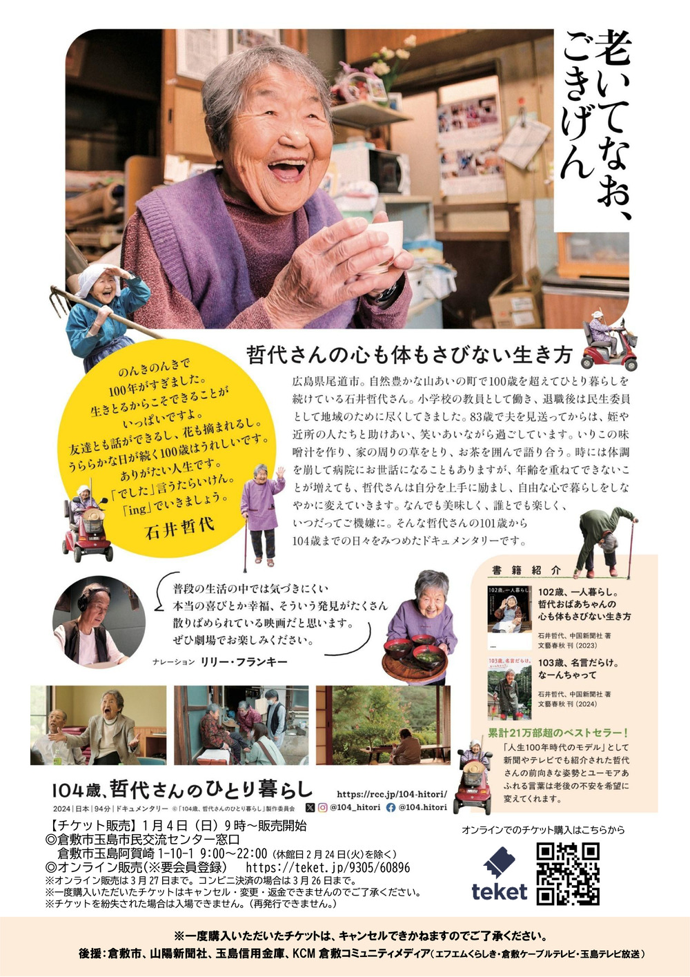 そんな哲代さんの101歳から104歳までの日々をみつめたドキュメンタリーです。