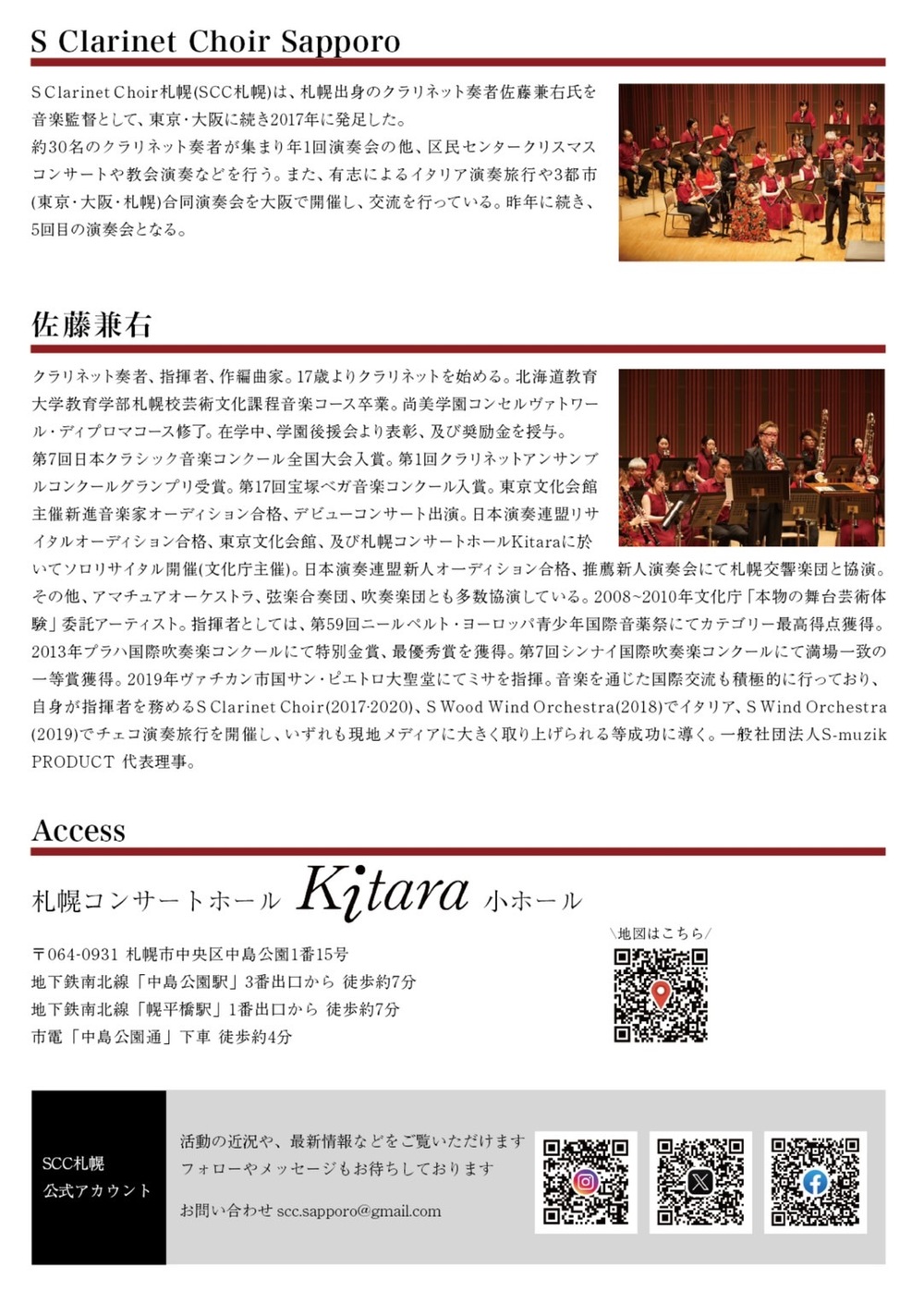 札幌近郊では珍しいクラリネットだけの演奏会。