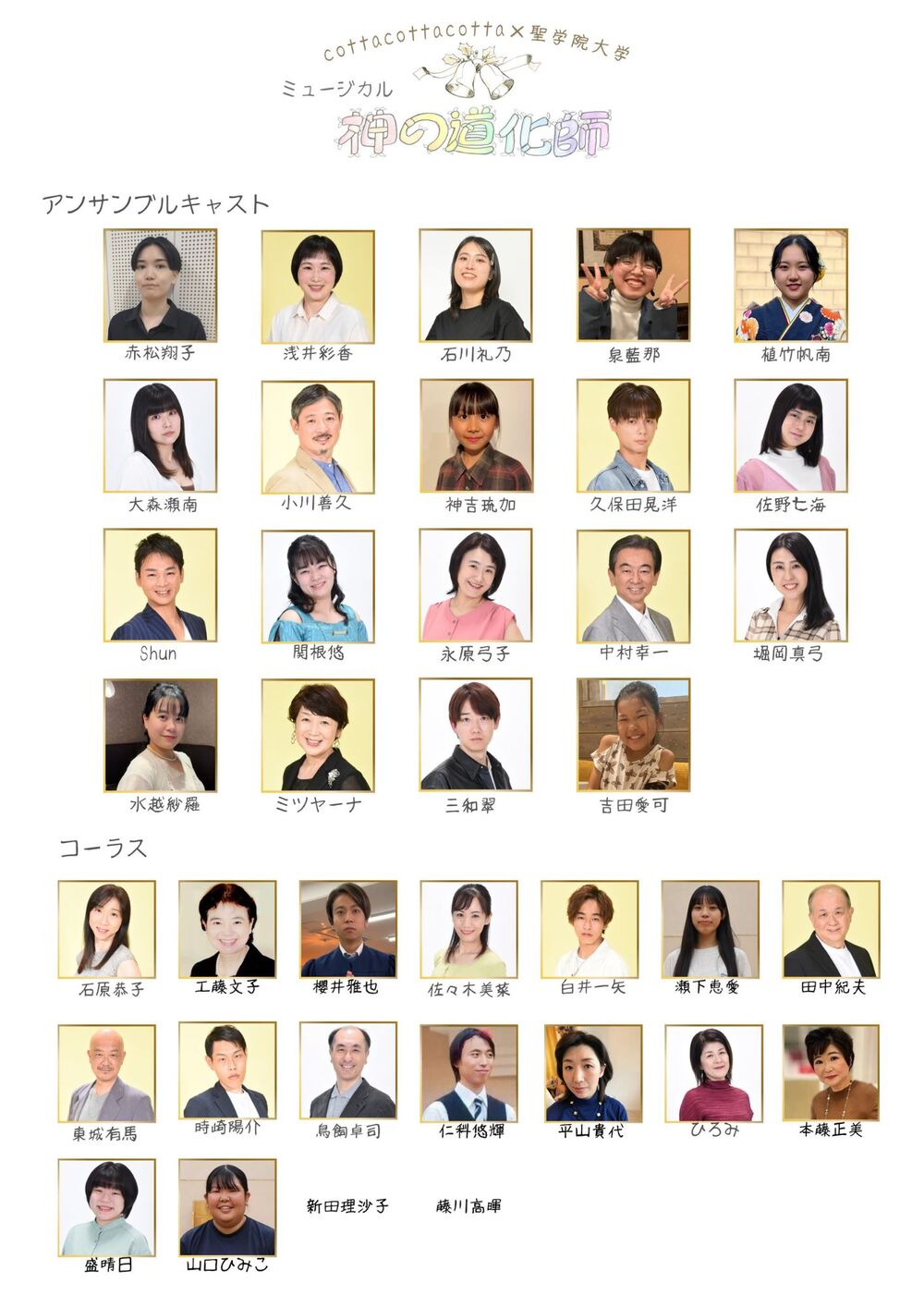 赤松翔子 浅井彩香 石川礼乃 泉藍那 植竹帆南 大森瀬南 小川善久 神吉琉加 久保田晃洋 佐野七海 Shun 関根悠 永原弓子 中村幸一 堀岡真弓 水越紗羅 ミツヤーナ 三和翠 吉田愛可