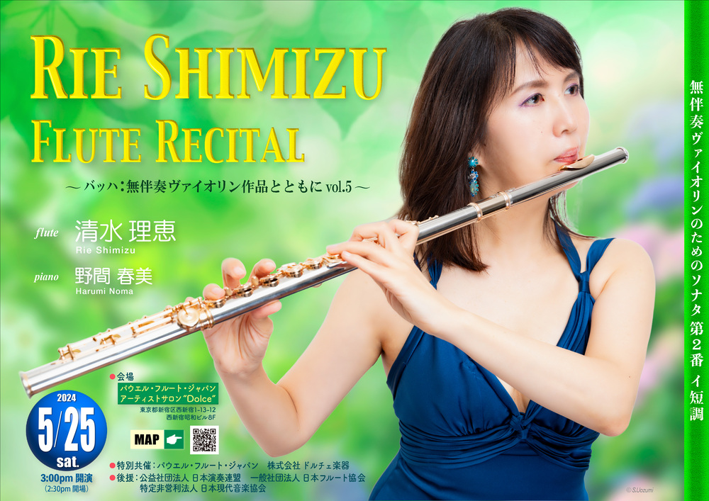 前半は、バッハ「ミサ曲ロ短調」よりフルートが活躍する2曲、無伴奏ヴァイオリン・ソナタ第2番。後半は元ボストン交響楽団首席奏者ジャック・ズーンが初演し、音楽之友社から楽譜が発売されている、清水研作のフルート独奏から始まります。それに続くオペラ・ファンタジー2曲、モーツァルト「魔笛」とヴェルディ「リゴレット」では、数々の美しいメロディーをお楽しみください。