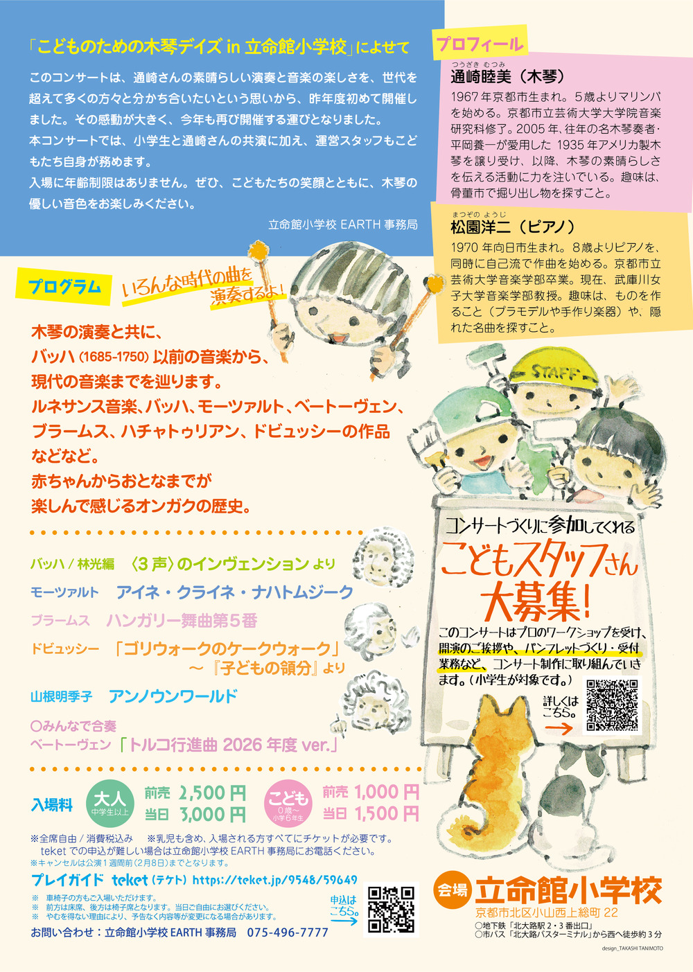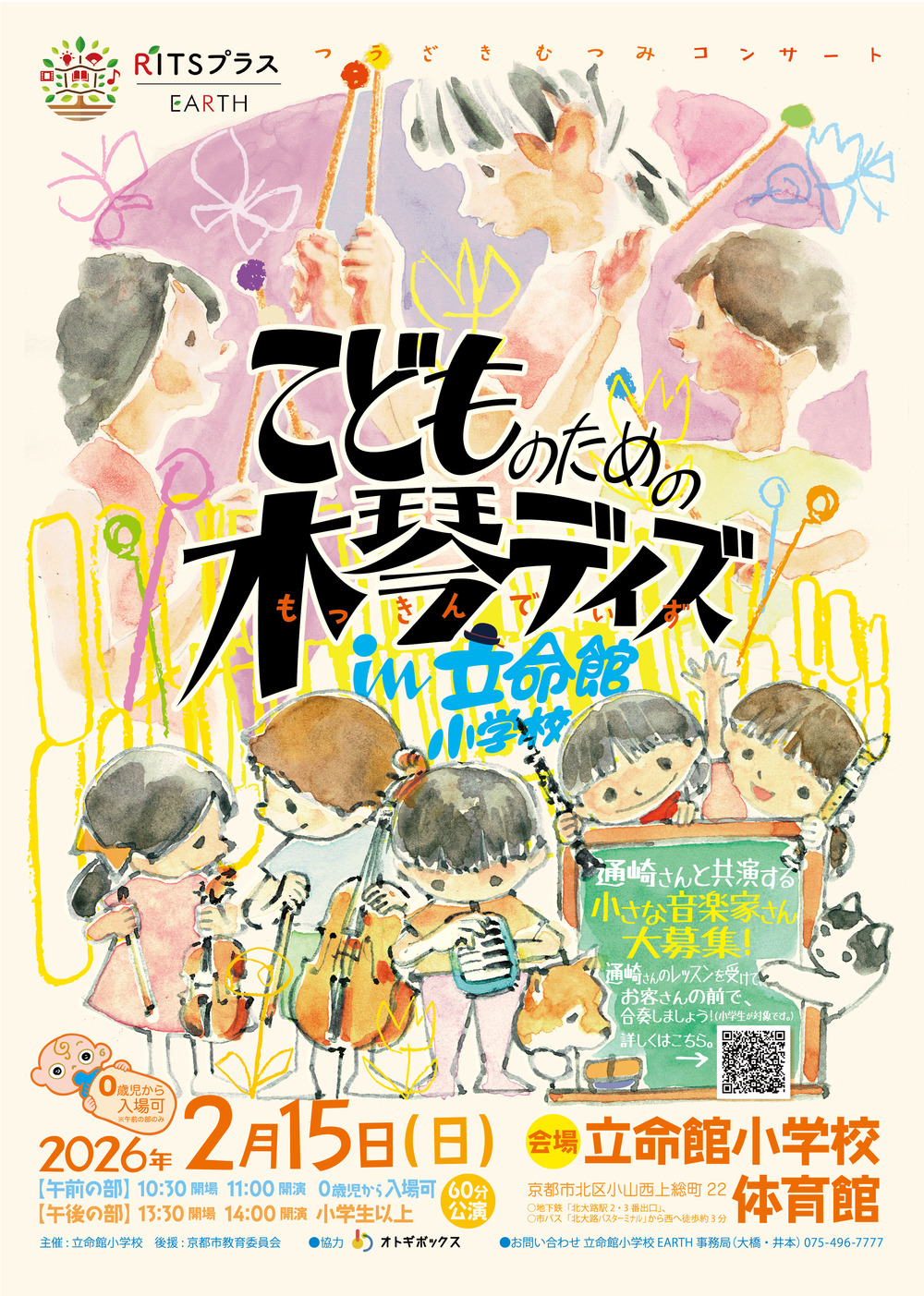 本コンサートでは、小学生と通崎さんの共演に加え、運営スタッフもこどもたち自身が務めます。