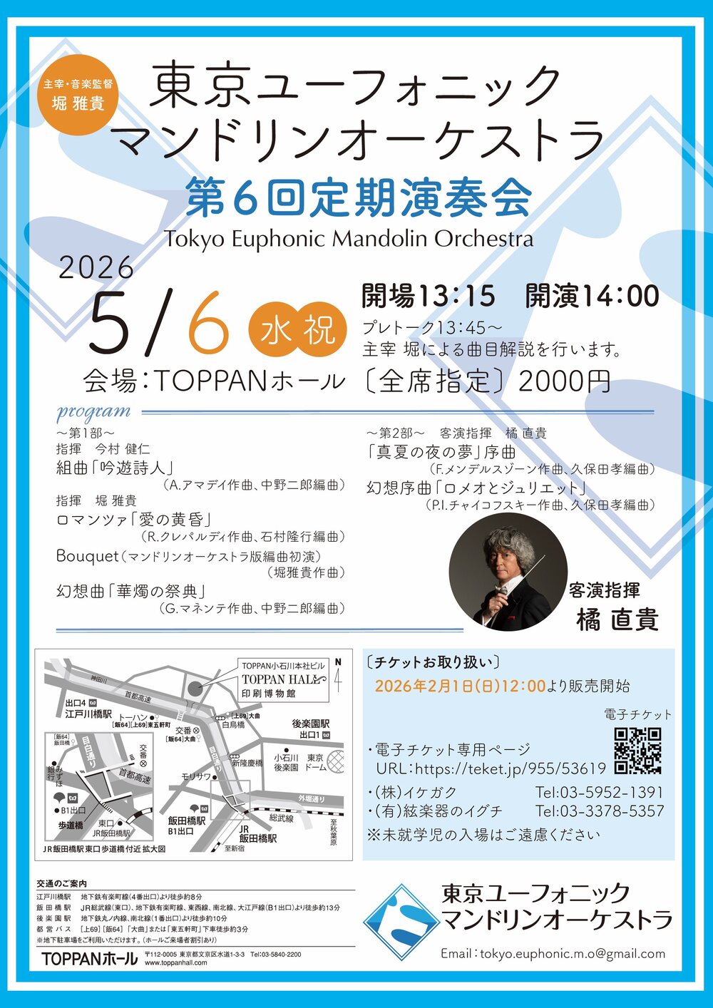 第6回定期演奏会を迎えた東京ユーフォニックマンドリンオーケストラ。