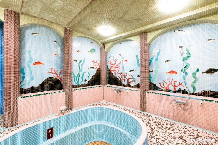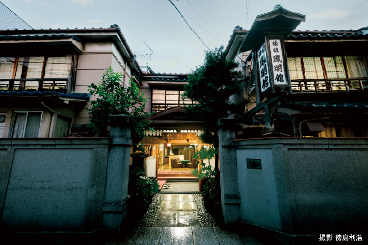 明治31年創業の「鳳明館」は、本郷下宿建築の面影を色濃く残す貴重な木造建築です。戦後は旅館へと改築され、登録有形文化財にも登録されています。銘木を贅沢に使った建築や、天井・床の間等の意匠、タイル装飾が美しい龍宮風呂など、職人の遊び心が詰まった空間を、女将の案内で巡ります。