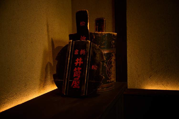 戦災を免れ、築100年の歴史を紡ぐ貴重な町家「井筒屋」。その象徴ともいえる特徴的な「ギャンブレル屋根」や、貴重な建築意匠「亀甲貼り銅板」が、当時の匠の技を今に伝えます。大正期の建具や照明器具や、往時の面影を丁寧に蘇らせた内部空間も見どころのひとつ。歴史が息づく井筒屋の佇まいと、職人たちの卓越した技を感じる特別なひとときを、建築家・板坂諭さんの案内でご体感ください。