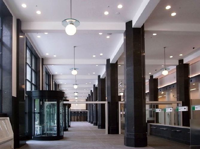 設計│竣工時:逓信省経理局営繕課(吉田鐡郎) / 改修:三菱地所設計、ヘルムート・ヤーン、隈研吾建築都市設計事務所