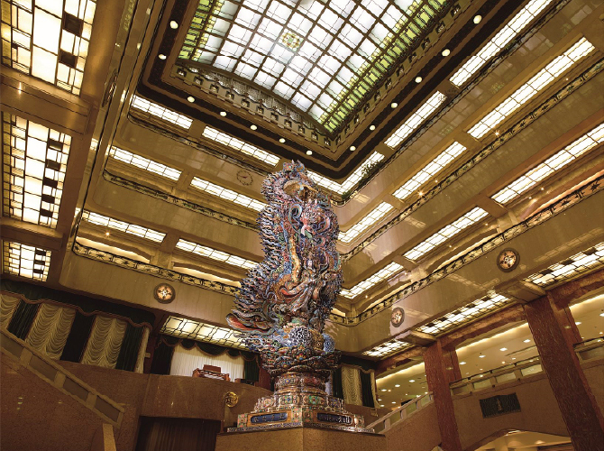 日本を代表する百貨店「日本橋三越本店」へ。ルネサンス様式の重厚で華麗な意匠、ステンドグラスをはめ込んだ天井、大理石と石膏彫刻に彩られた周壁。日本の百貨店の発展を象徴する重要文化財を、三越の女将とめぐります。