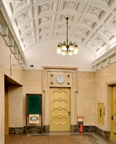 繊細なロマネスク様式を駆使した「丸石ビルディング」を特別見学。華やかな内外装は、美術品のような仕上がり。昭和初期の堅牢な設計は、耐震・耐火に優れ、今も用途を変えずに人々の活動を支えています。普段は見ることのできない貴重な建築内部を、創建時からの所有者である太洋商会の担当者と巡ります。