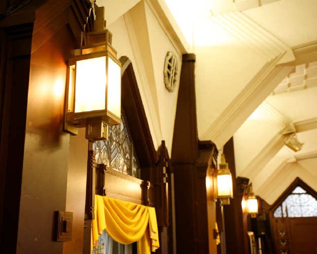 TVドラマ「名建築で昼食を」でも話題を呼んだ「銀座ライオンビル」を、原案者の甲斐みのりさんがご案内。ライト式の意匠が目をひく6階クラシックホールで、微細な装飾に込められたメッセージを紐解きます。最後はドラマにも登場したナポリタンなど、東京建築祭のための特別ランチプレートをいただきます。