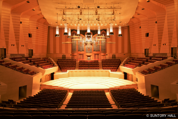 「世界一美しい響き」を目指して、第一線で活躍する指揮者や演奏家はもとより音楽を愛する各界の人々の意見を幅広く取り入れて設計されたサントリーホール。日本初のヴィンヤード形式で世界最大級のオルガンを備えた大ホール、アート作品も豊富なホワイエ、普段は関係者以外は立ち入れない楽屋、アーティスト・ラウンジなどを、ホールを熟知したレセプショニストが案内します。