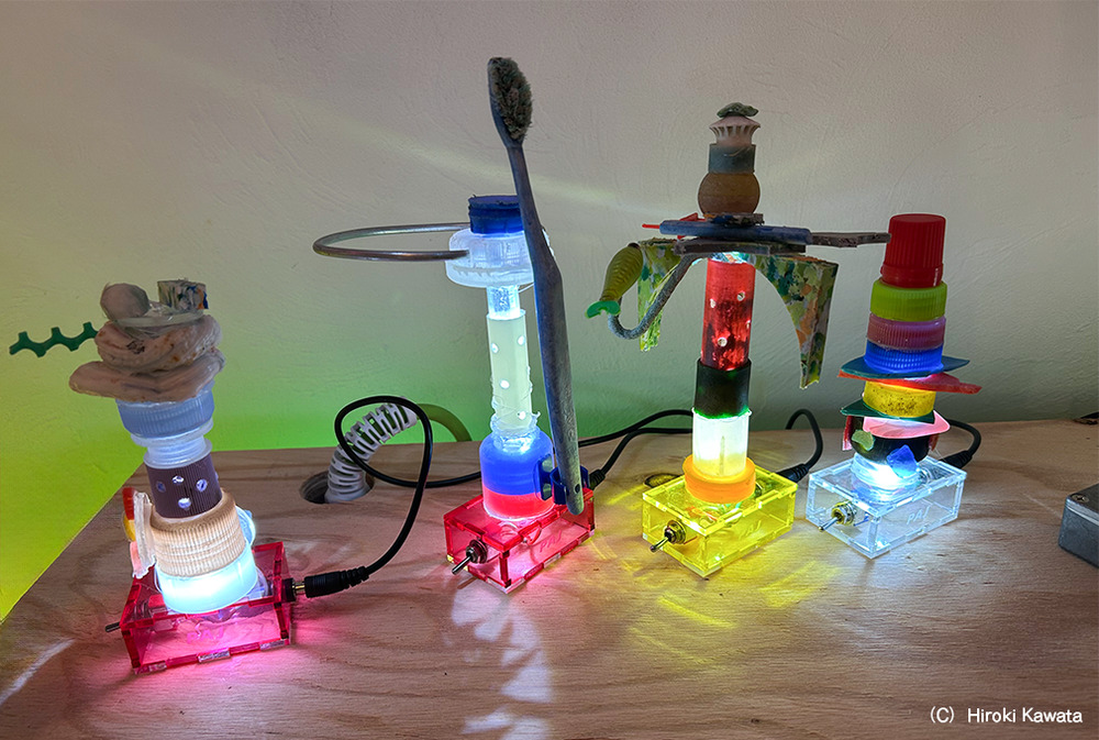 ピムリコアーツジャパン 1979年生まれ リサイクルアーティスト/ クリエーター。2年間過ごしたロンドンのピムリコで出会った、エジプト人アリとの生活と、ドイツ人デザイナーヨーガンレールさんの展示「 ここは誰のもの? 」にインスパイアされ、海洋プラスチックごみや廃材などを使ったフィジカルな作品作り、発表をメインとし、プラスチックと向き合うことで見えてきたデジタル世界との親和性を探求している。