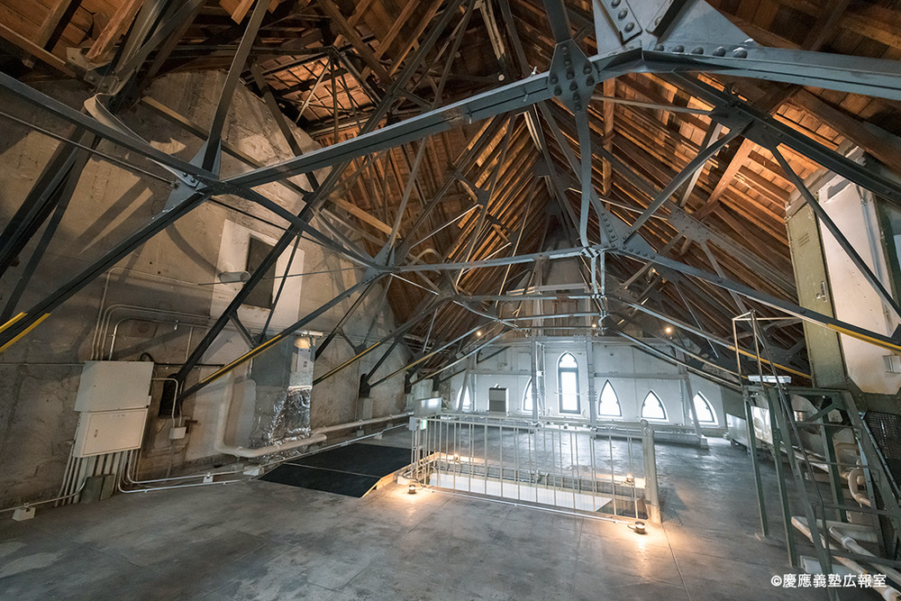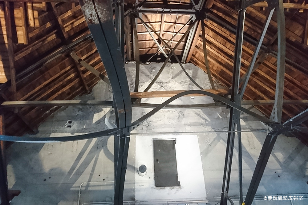 1912年竣工、曾禰中條建築として知られる慶應義塾図書館旧館。ふだんは立ち入れない地下免震層や、第一書庫屋根裏へ案内します。免震レトロフィット工法による免震装置や空襲で歪んだままの竣工当時のトラスを、間近で確認できます。ガイドは、慶應義塾福澤研究センター教授/慶應義塾史展示館副館長の都倉さん。建設経緯や意匠、竣工後にたどった歴史も解説します。