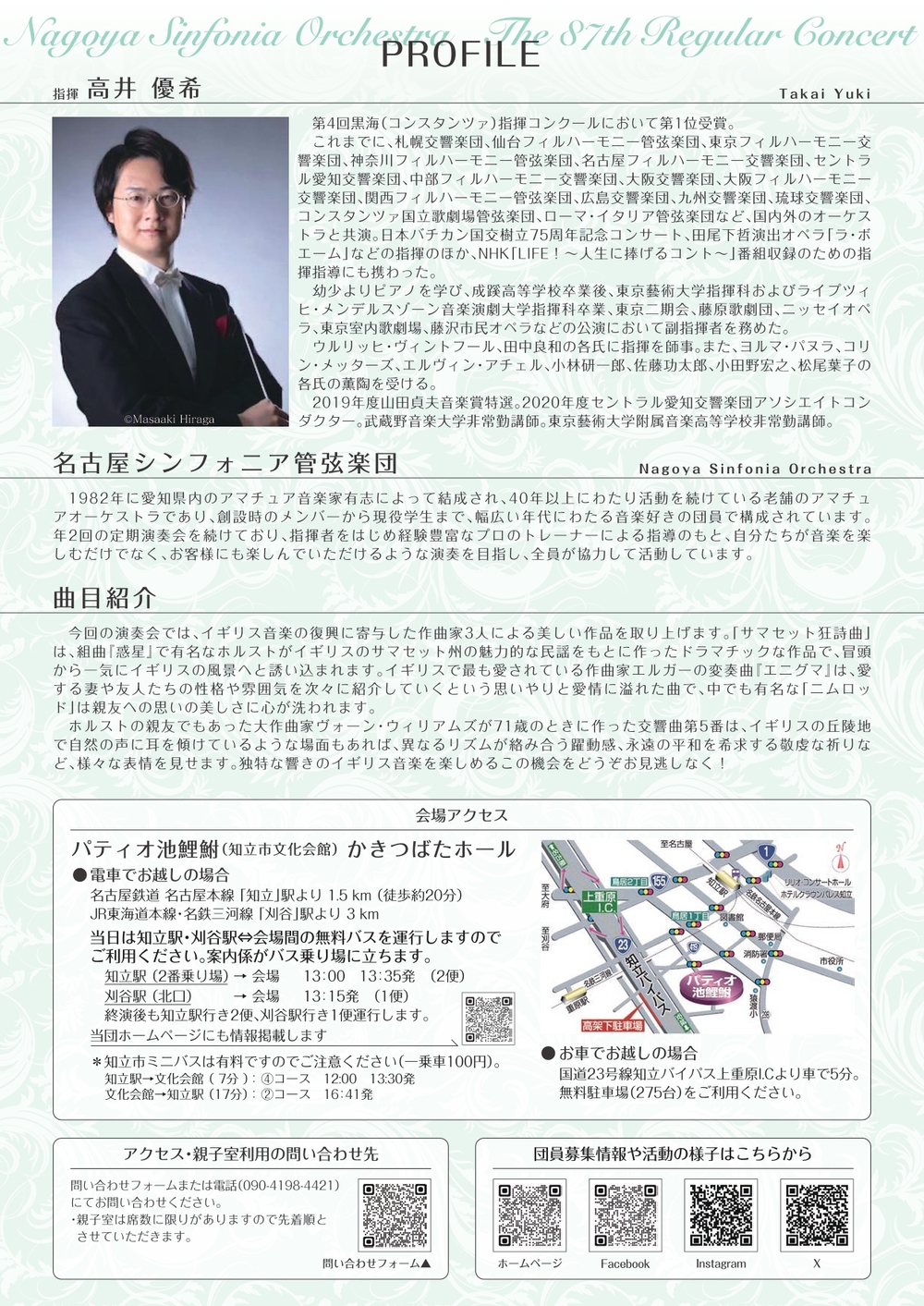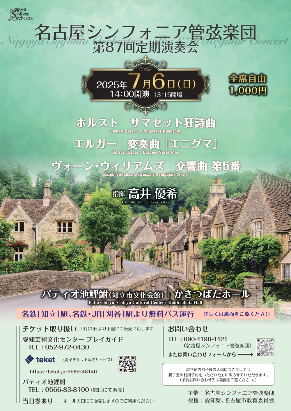 今回の演奏会では、イギリス音楽の復興に寄与した作曲家3人による美しい作品を取り上げます。「サマセット狂詩曲」は、組曲『惑星』で有名なホルストがイギリスのサマセット州の魅力的な民謡をもとに作ったドラマチックな作品で、冒頭から一気にイギリスの風景へと誘い込まれます。イギリスで最も愛されている作曲家エルガーの変奏曲『エニグマ』は、愛する妻や友人たちの性格や雰囲気を次々に紹介していくという思いやりと愛情に溢れた曲で、中でも有名な「ニムロッド」は親友への思いの美しさに心が洗われます。