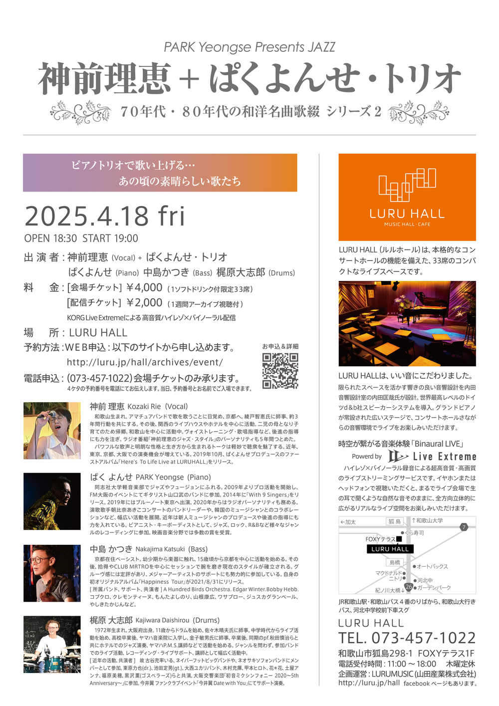 神前理恵(vo)+ぱくよんせ・トリオ( ぱくよんせ(p) 中島かつき(b) 梶原大志郎(dr) )