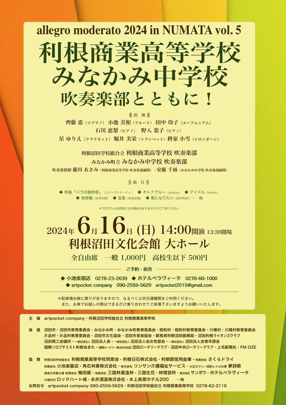 利根商業高等学校・みなかみ中学校吹奏楽部の皆さんとご一緒する《allegro moderato 2024 in NUMATA》。
