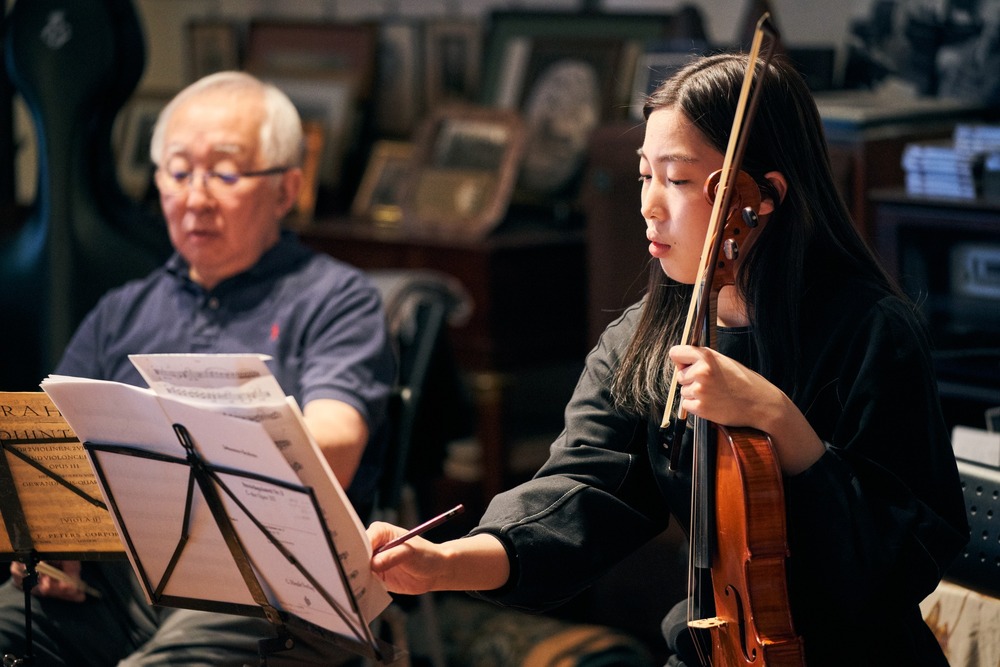 本室内楽塾では国内外でヴィオリストや指揮者として活躍してきた大山平一郎(Music Dialogue芸術監督)が塾長、ソロや室内楽を中心に活躍しているヴィオリニストの中 恵菜(MDアーティスト)が講師をつとめ、受講生と室内楽を「共演」しながら、直に指導を行う形式をとっています。