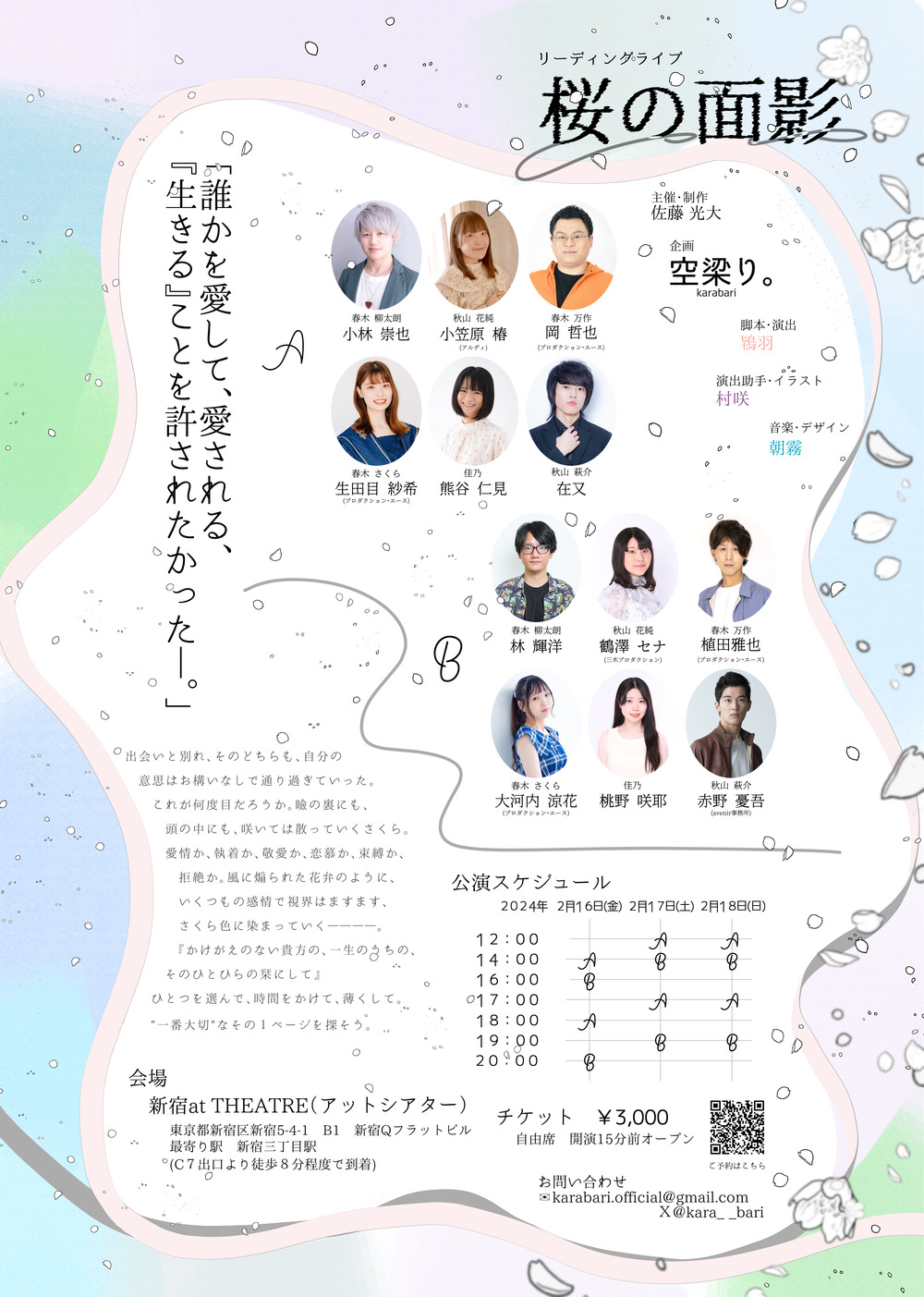 2月に開催された リーディングライブ「桜の面影」キャストA.B両公演の配信チケットです。