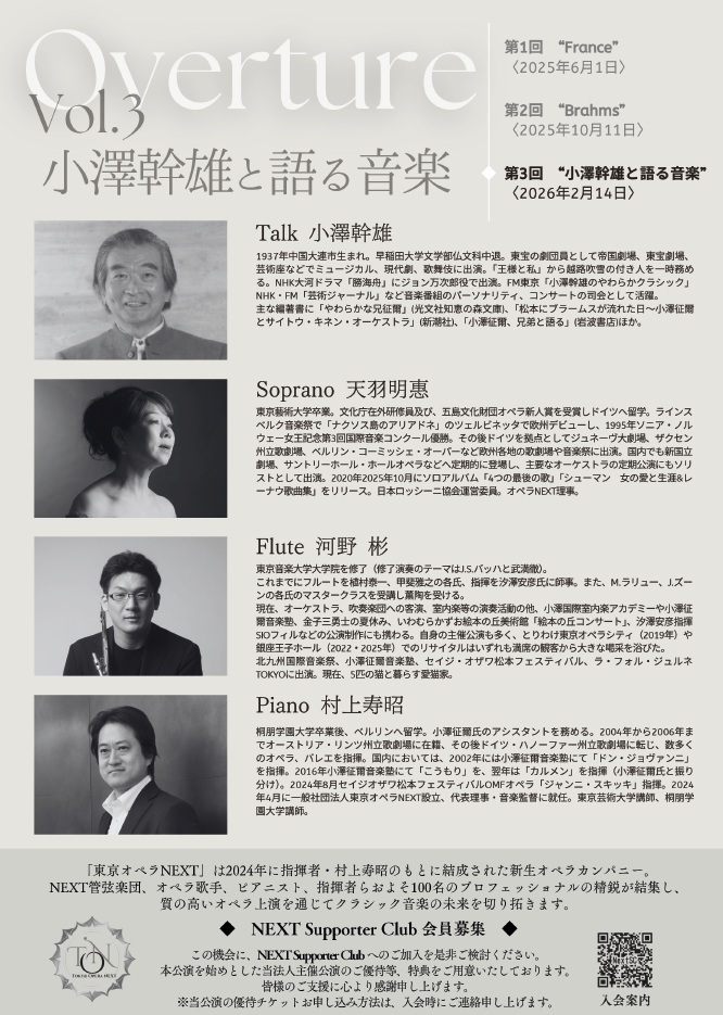 東京オペラNEXTはオーケストラ、歌手、コレペティ、指揮者からなる音楽家集団、オペラカンパニーです。