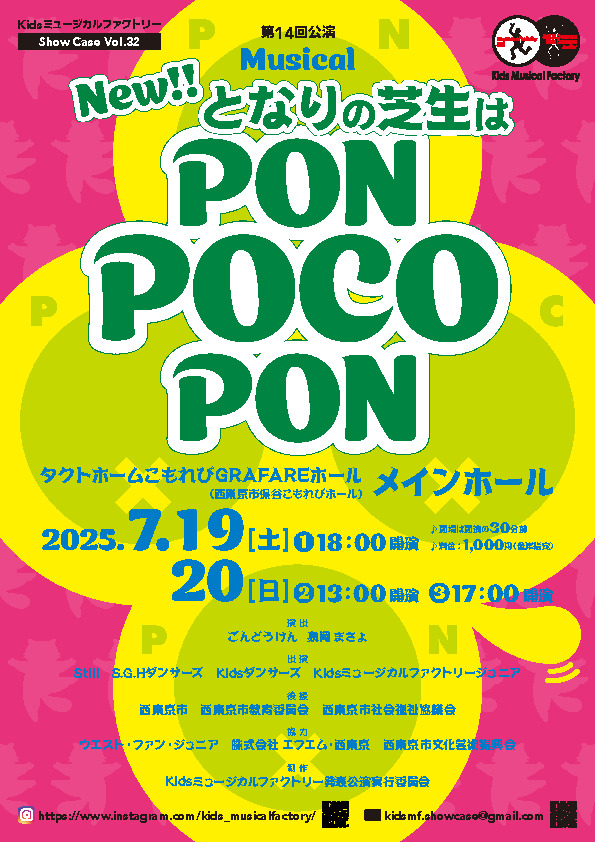 Kidsミュージカルファクトリー26年の歴史の中で4度目の上演となる「となりの芝生はPON POCO PON」。