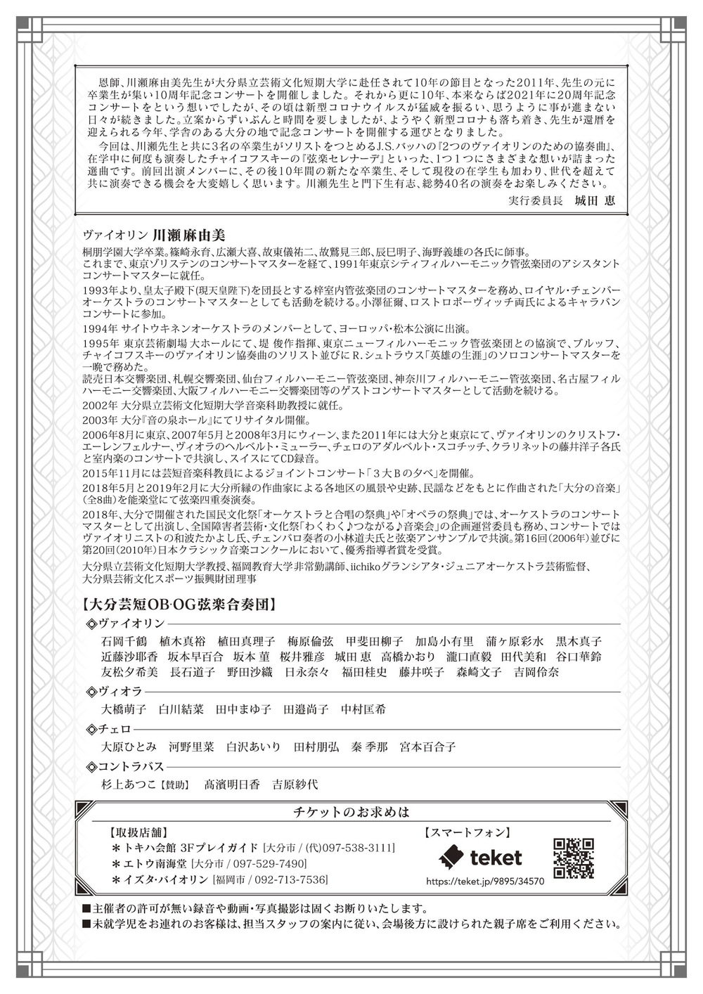 その他のお問い合わせ先:川瀬麻由美先生記念コンサート実行委員会